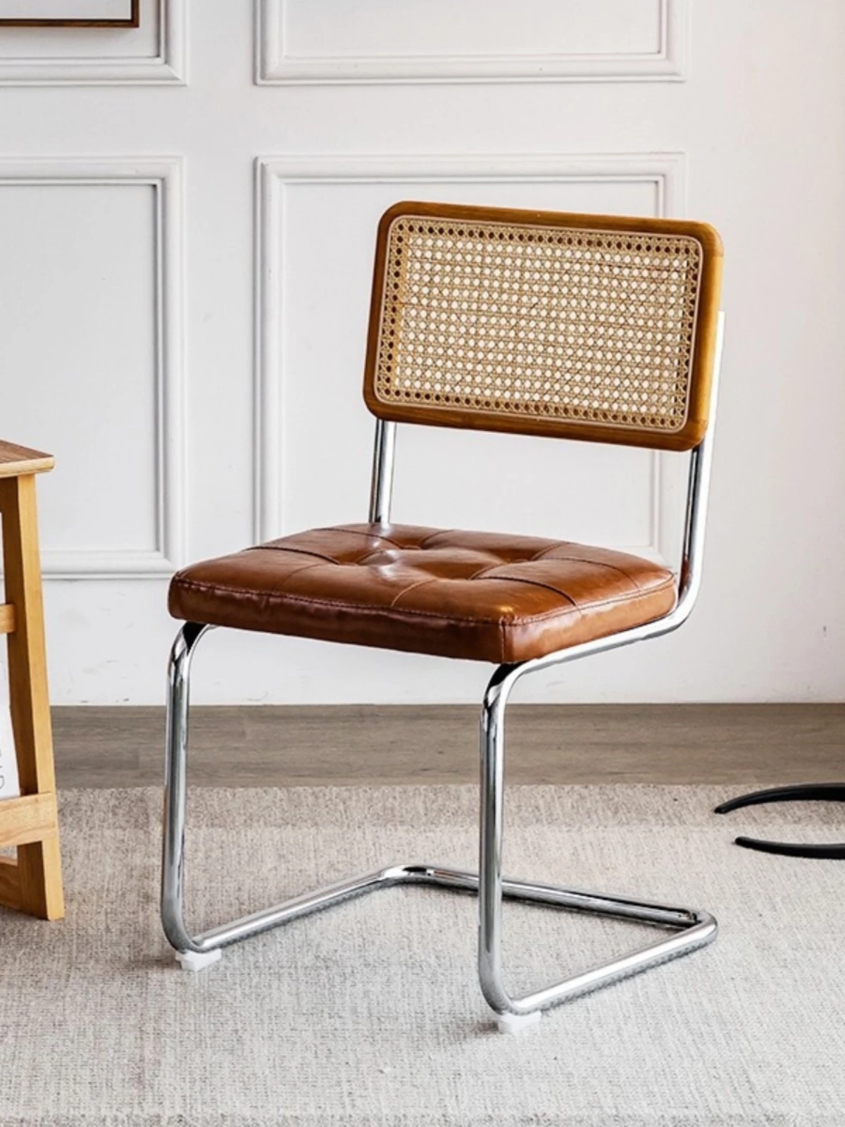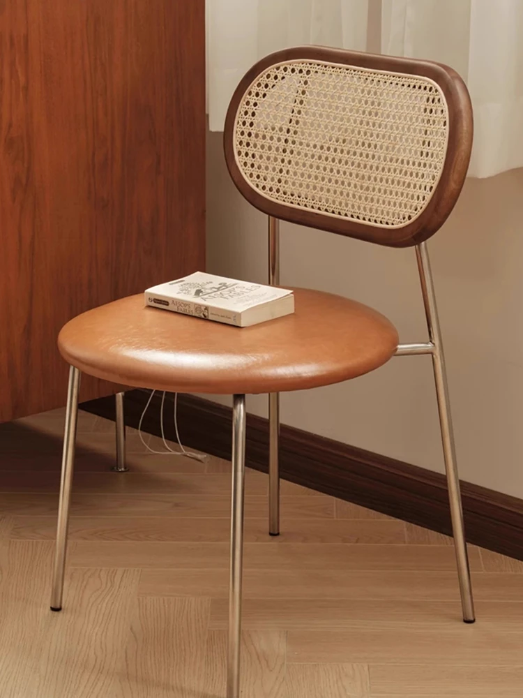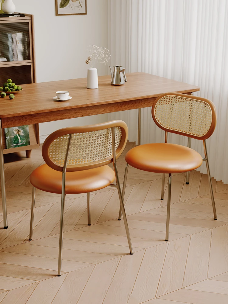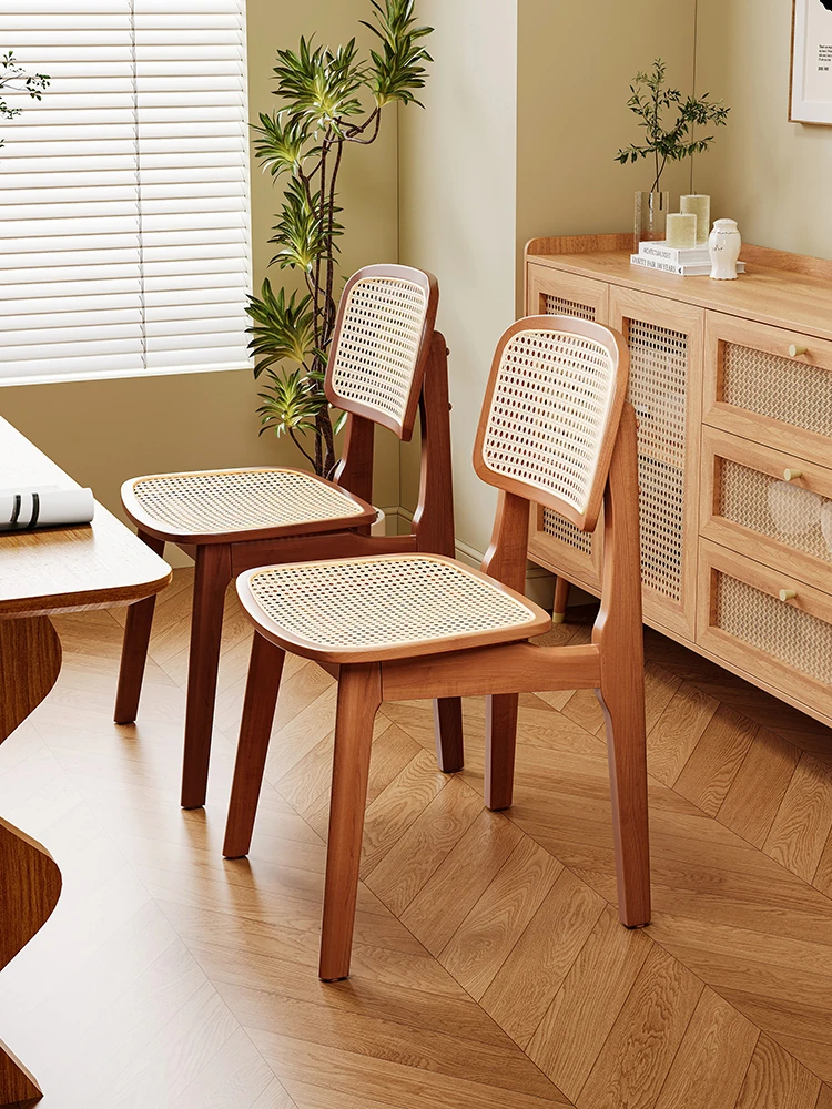 中古無垢材質のダイニングチェア|家庭用レストランスタイル|背もたれ付きの侘寂風|ラタン編みのテーブル&チェアセット|チャンディーガル製アームチェアを手に入れましょう!上質なリラックス空間を実現!