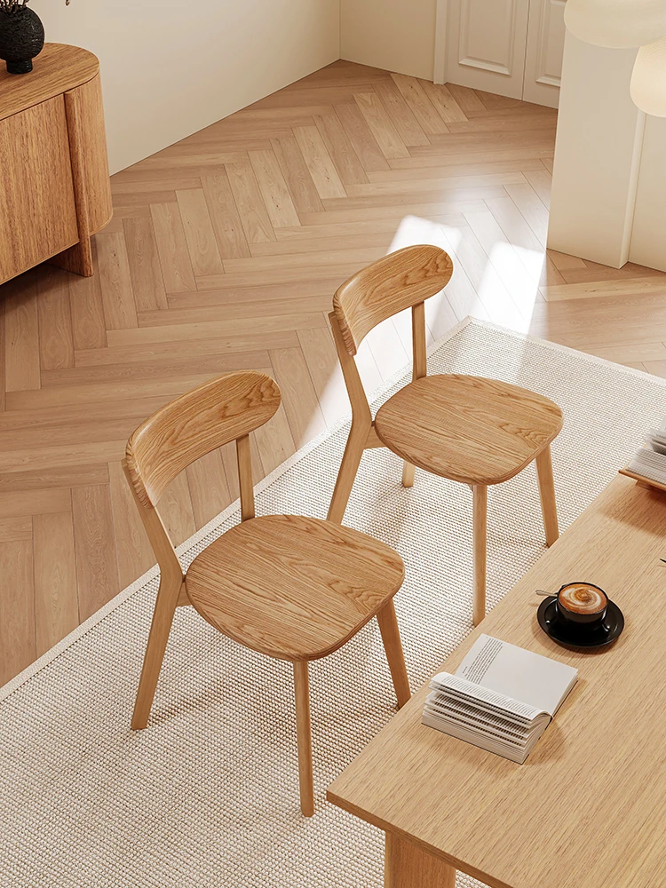 家庭用のミニマルな人魚型デザインの本格的な無垢材ダイニングチェア - 和の美を感じる侘寂風スタイル!あなたの食卓に温もりをプラス。