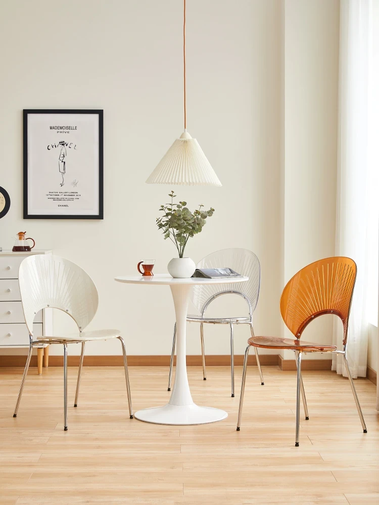 貝殻型フレンチレトロダイニングチェア|おしゃれで使いやすい家庭用背もたれ付きダイニングチェア|北欧デザインアクリルスツール|透明感のある美しい化粧椅子