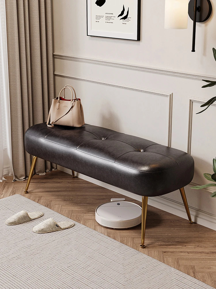 玄関用おしゃれなスリッパチェンジベンチ - 高級感あふれる長椅子で、入室時の靴を脱ぎやすく。スタイリッシュなデザインで、玄関やベッドサイドにピッタリ。あなたの暮らしに洗練をプラス!