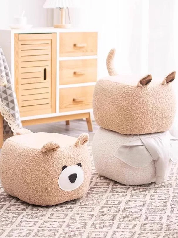 かわいいデザインの小さなスツール|リビングや玄関で便利な靴替え用|おしゃれなカートゥーンソファスツール|重ねて収納できる!子供用にも最適な座り心地抜群のコンパクトスツール!