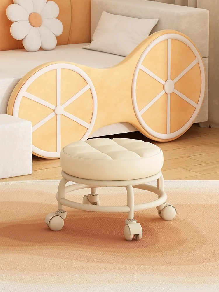 静音で動きやすい!360度回転する万向輪の小さな椅子。家で使えるおしゃれなデザインのローサイ!長時間座っても疲れない、移動も簡単なクリエイティブな丸型スツールです。