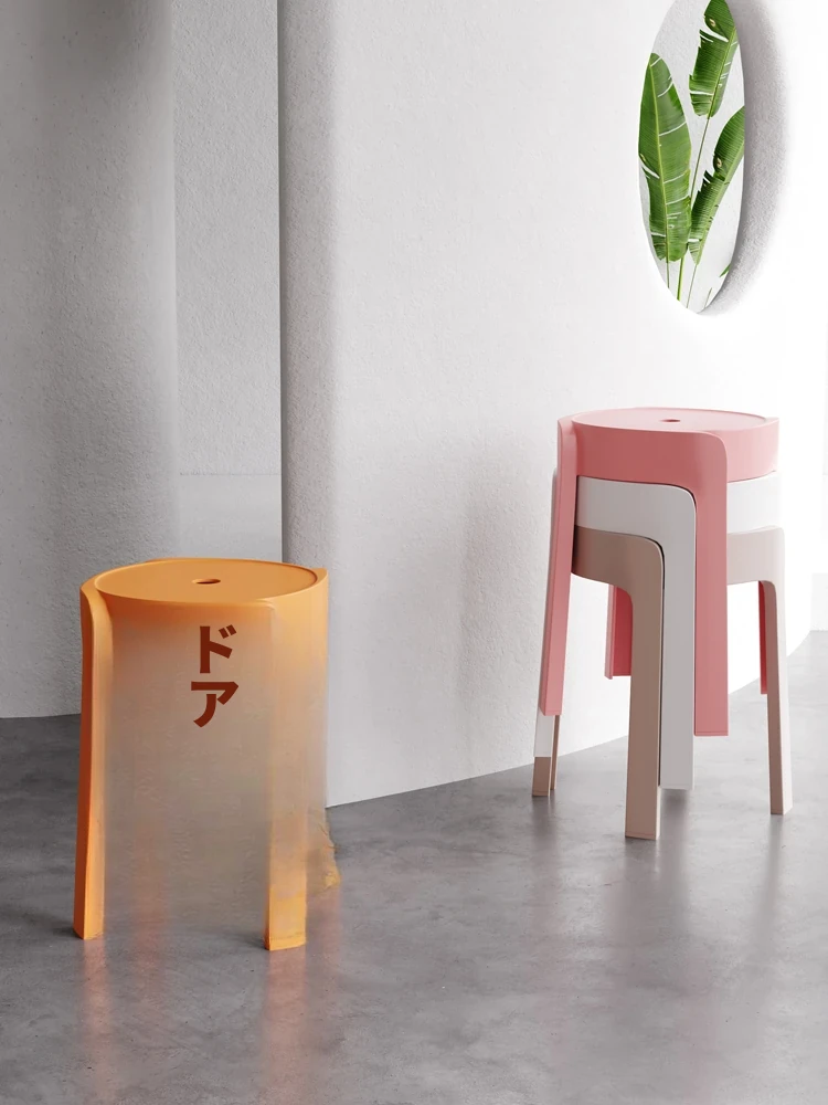 家庭用プラスチック製厚型スツール|モダン&シンプル|積み重ね可能なミニ椅子|円形ミニスツール|極限のシンプルデザイン|快適さとスタイルを両立!