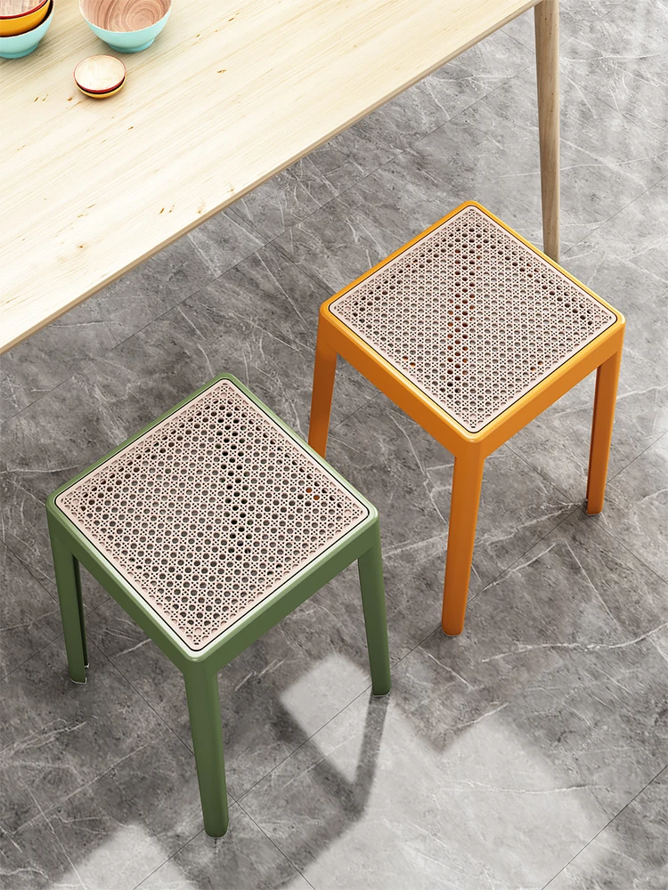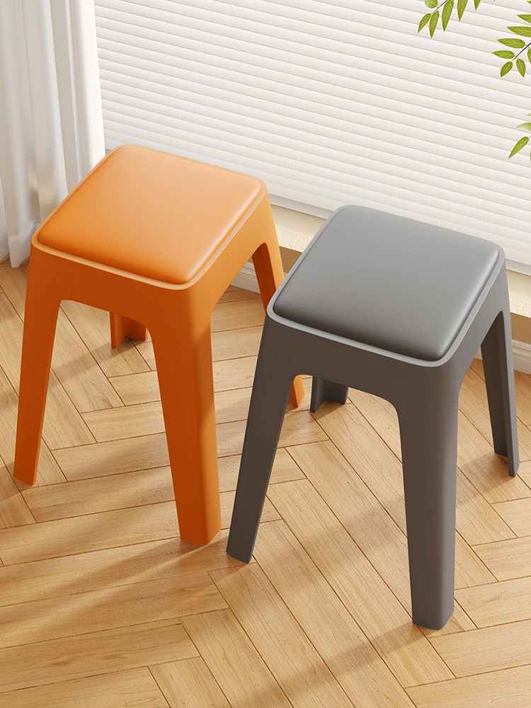 頑丈で耐久性抜群!厚手プラスチック製家庭用ダイニングスツール - ソフトパッド付きのスタイリッシュな角型、重ねて収納可能!ゲスト用にも最適なコンパクトスツール。