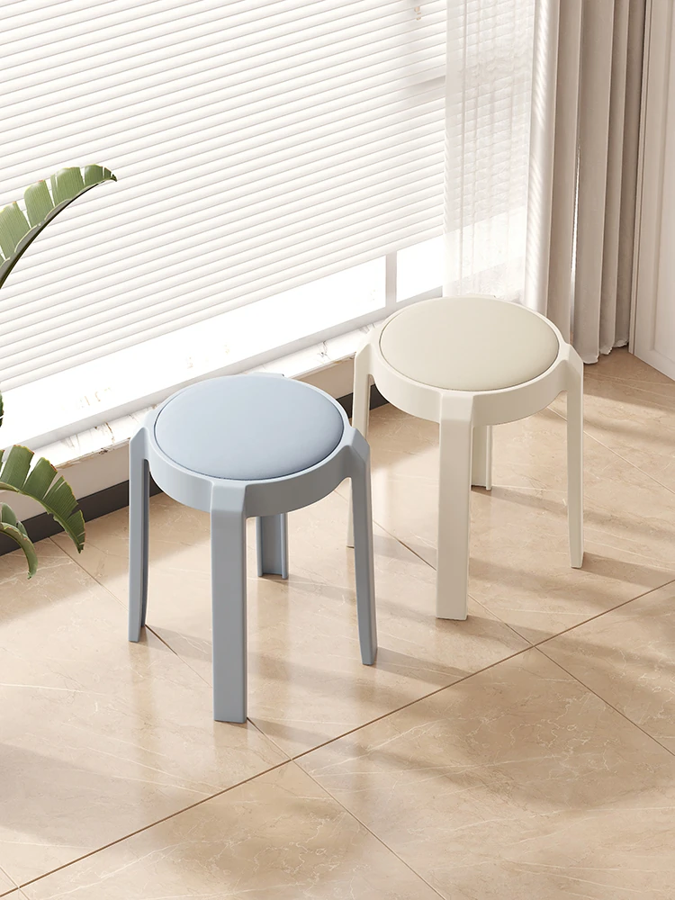 家用プラスチック製厚板スツール | スタッキング可能!クリーム風デザインの円形ソフトパックスツール | 丈夫で耐久性抜群のハイチェア!快適な座り心地でお部屋をおしゃれに彩ります。