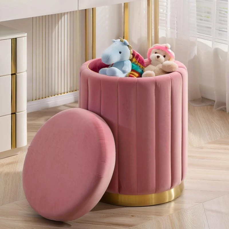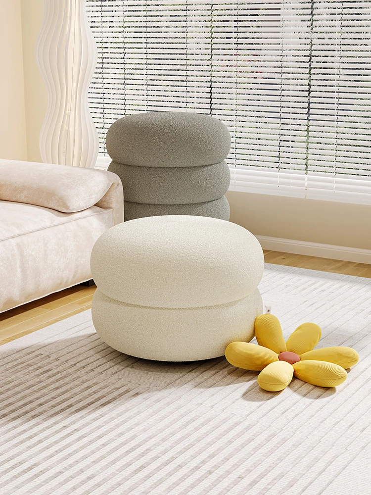 クリーム風の小さなスツール | おしゃれなリビング用家庭用ローチェア | 収納力抜群の丸型スツール | 女の子のお部屋にぴったりな化粧台椅子 | 快適さとスタイルを兼ね備えた必須アイテム!