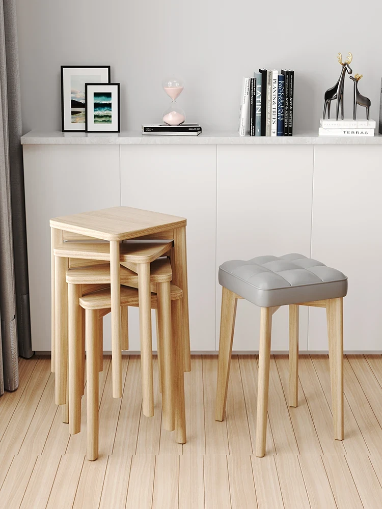 2024年新作!スタイリッシュな実木製スツール - ご自宅にぴったりなコンパクトで重ねられるソフトパッド付き。アイデア満載のデザインで、ダイニングやリビングに最適なスクエアスツール!