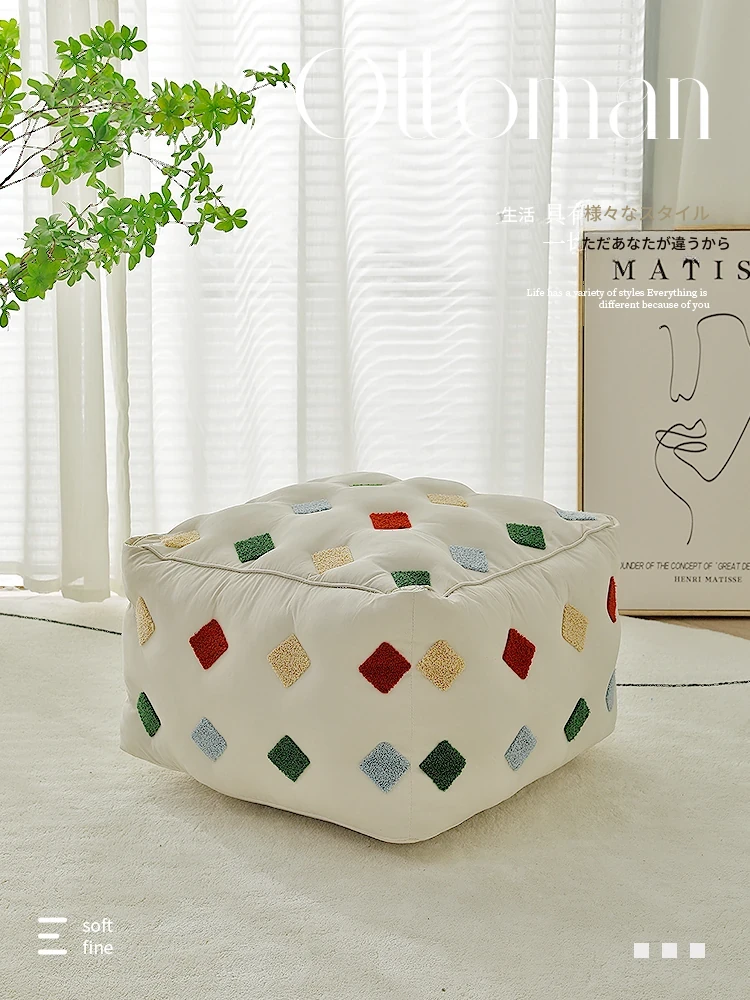 北欧風のクリエイティブな小型スツール - リビングやソファで使えるおしゃれな足置き!インスタ映えするフラットなデザインで、リラックスした時間を演出する和風座布団です。