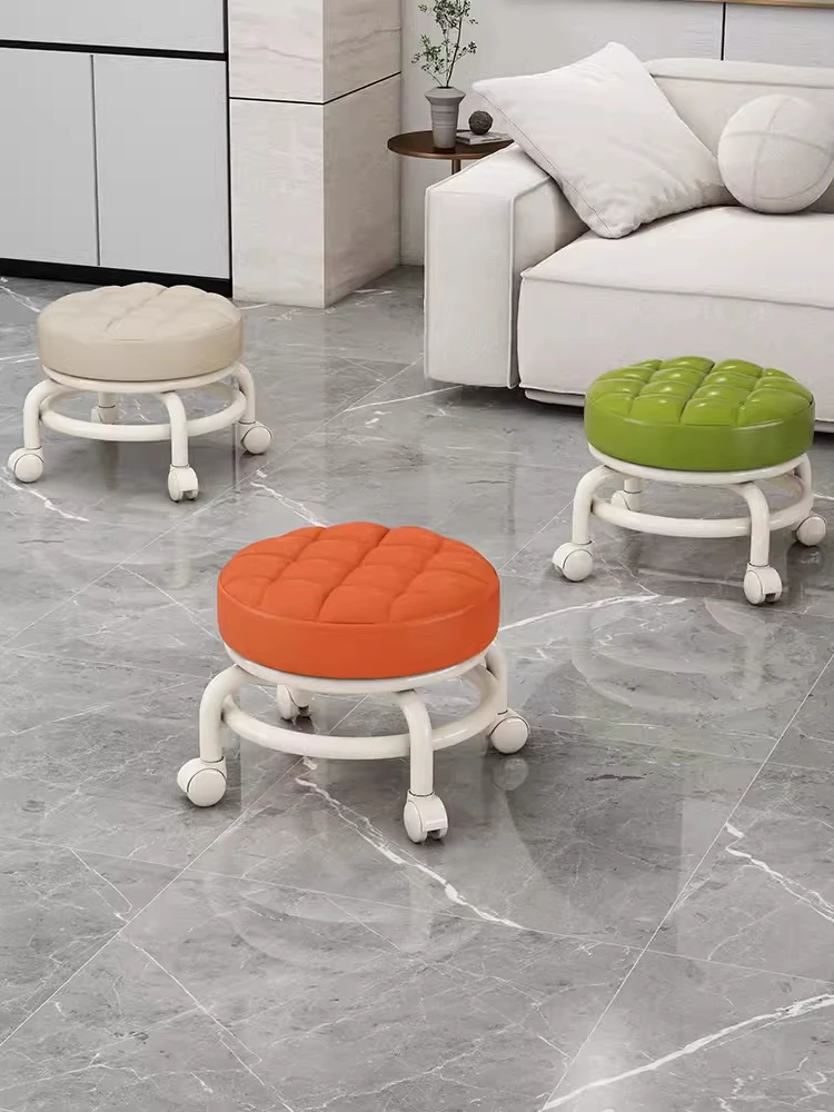 360度回転するキャスター付きミニスツール - 軽量で移動ラクラク!おしゃれなリビングにぴったりのデザイン、床掃除にも便利なアイデアスツール。高品質で、快適な座り心地をあなたの空間に!