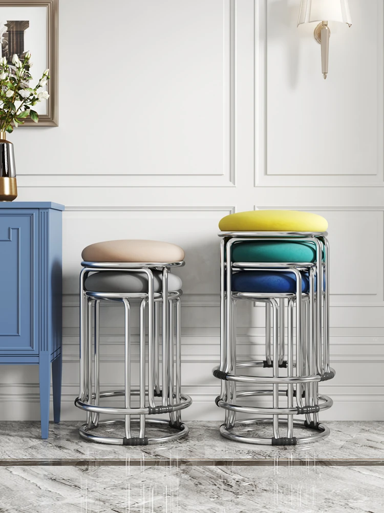 軽めのラグジュアリー!家庭用スタッキングラウンドスツール、丈夫で大人にも安心。リビングやサブ用に最適なモダンでシンプルなデザインの椅子。食卓椅子としても使える多用途アイテムです!