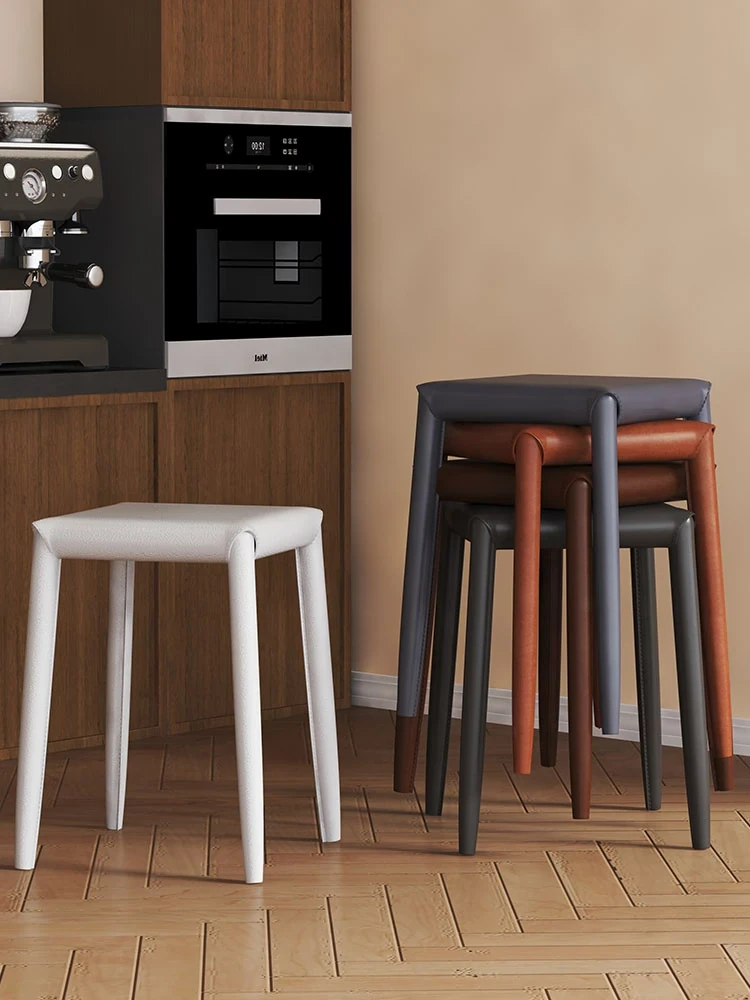 馬鞍革製のモダンでシンプルなダイニングスツール|積み重ね可能なコンパクトなサブスツール|ソフトパッド付きの快適なハイバースツールで、リビングやダイニングに最適!