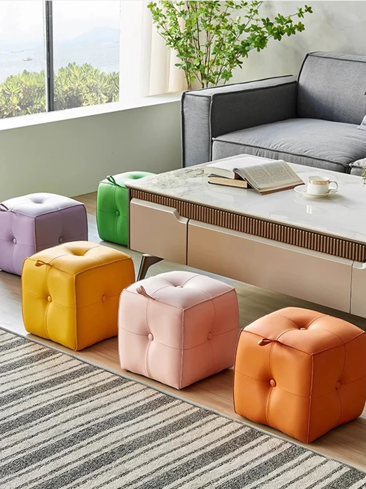 頑丈で耐久性抜群!家庭用小さなスツール - 玄関やリビングにぴったりなソフトパッケージの靴替えスツール。モダンでシンプルなデザインのテーブル代わりにもなる♪