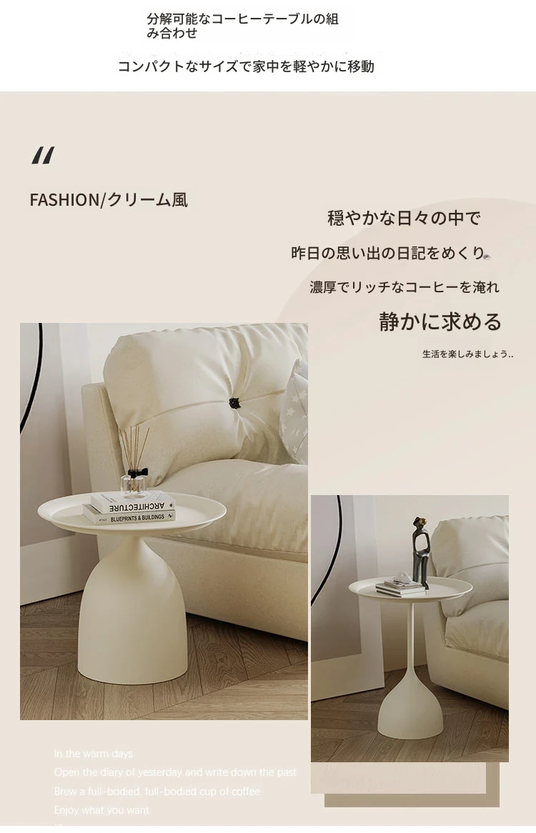 クリーミーな風合いのベッドルームソファとアイアン製の人気インスタ風コーヒーテーブルセット - おしゃれで快適な空間を演出し、心安らぐリラックスタイムをお楽しみください!