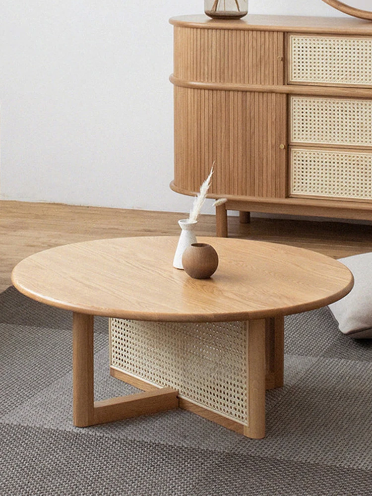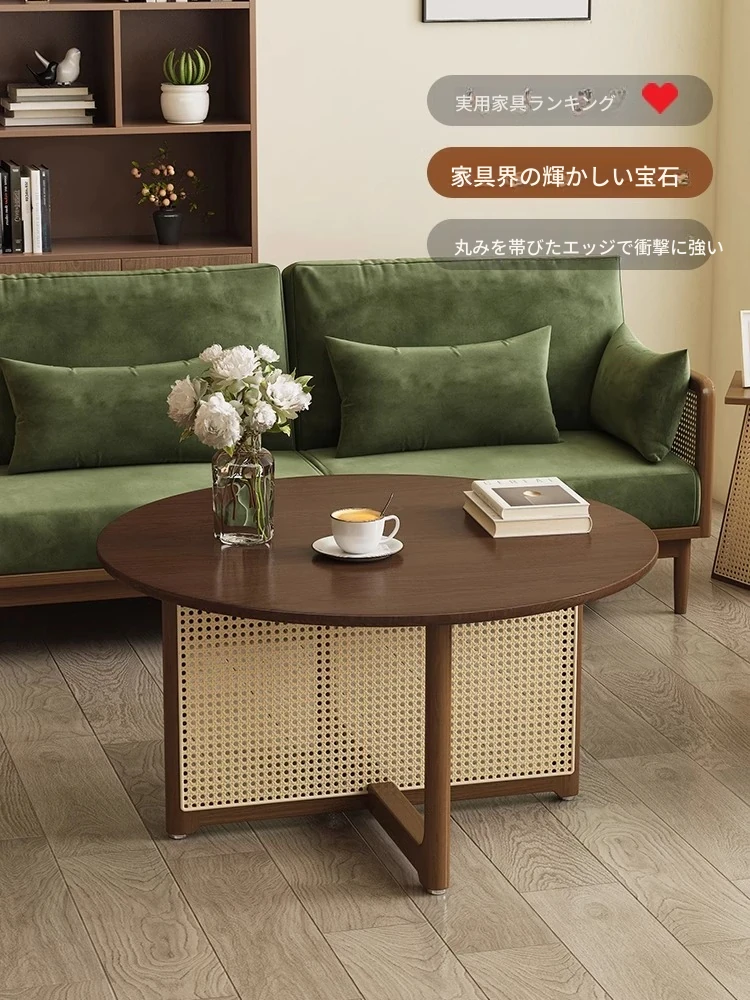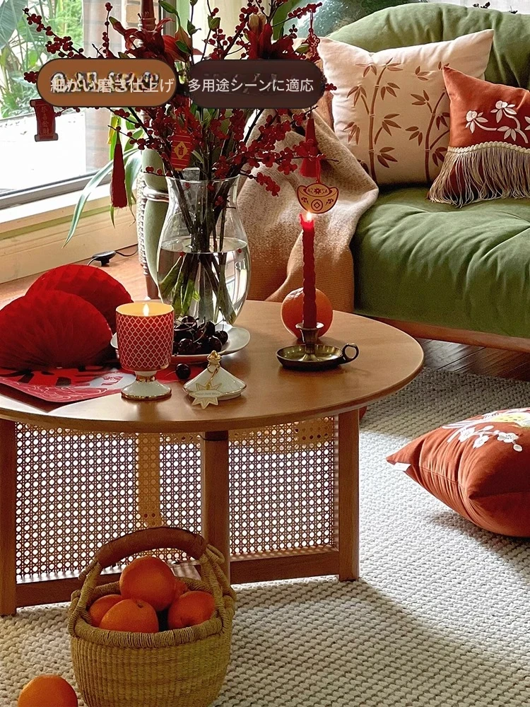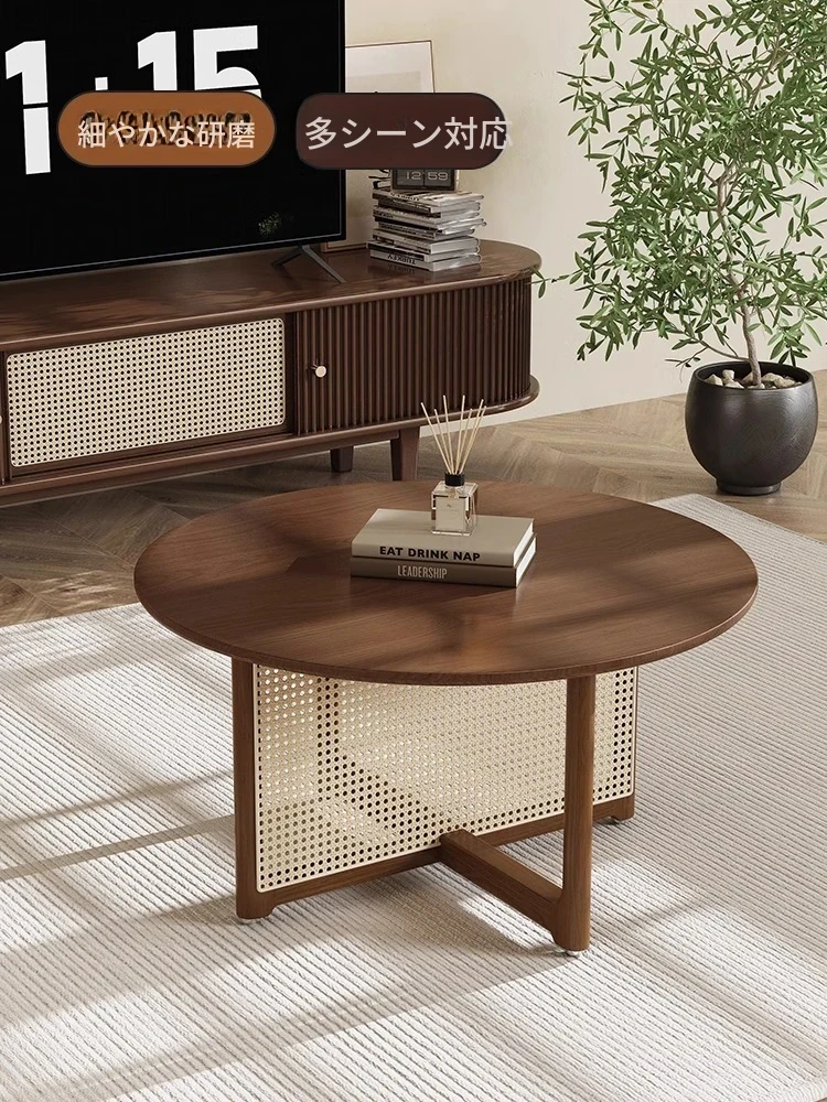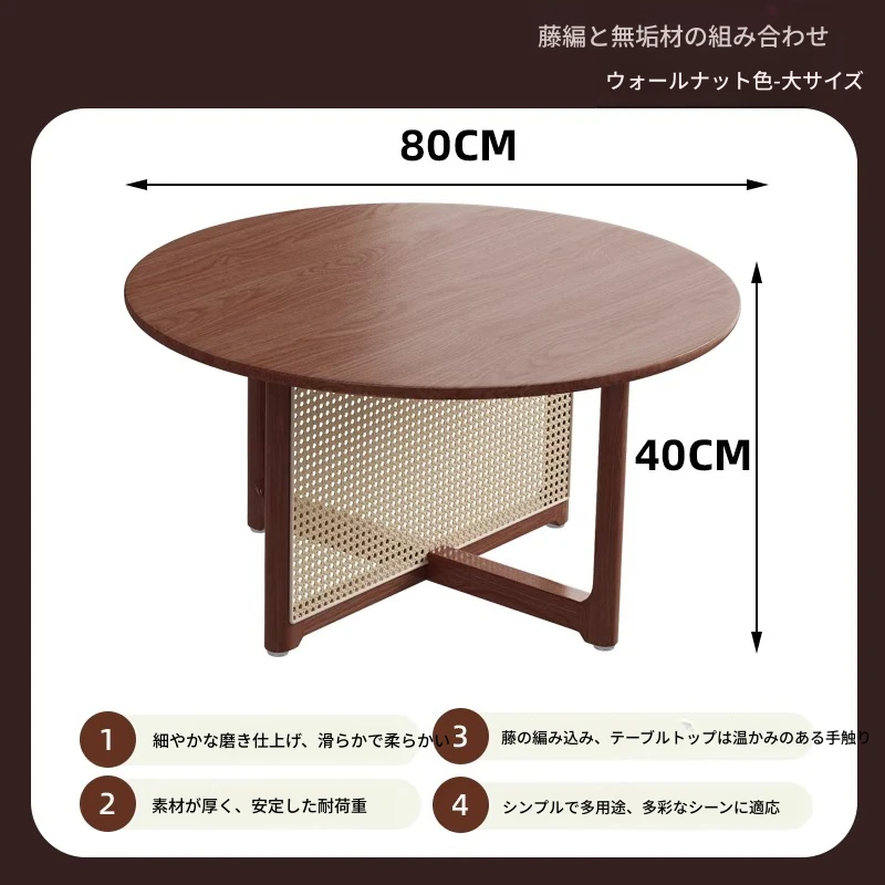 胡桃色-直径80cm FAS級輸入無垢材⭐メーカー直販*****和風復古スタイルバルコニー籐編原木茶卓*****【バイヤーショー募集】