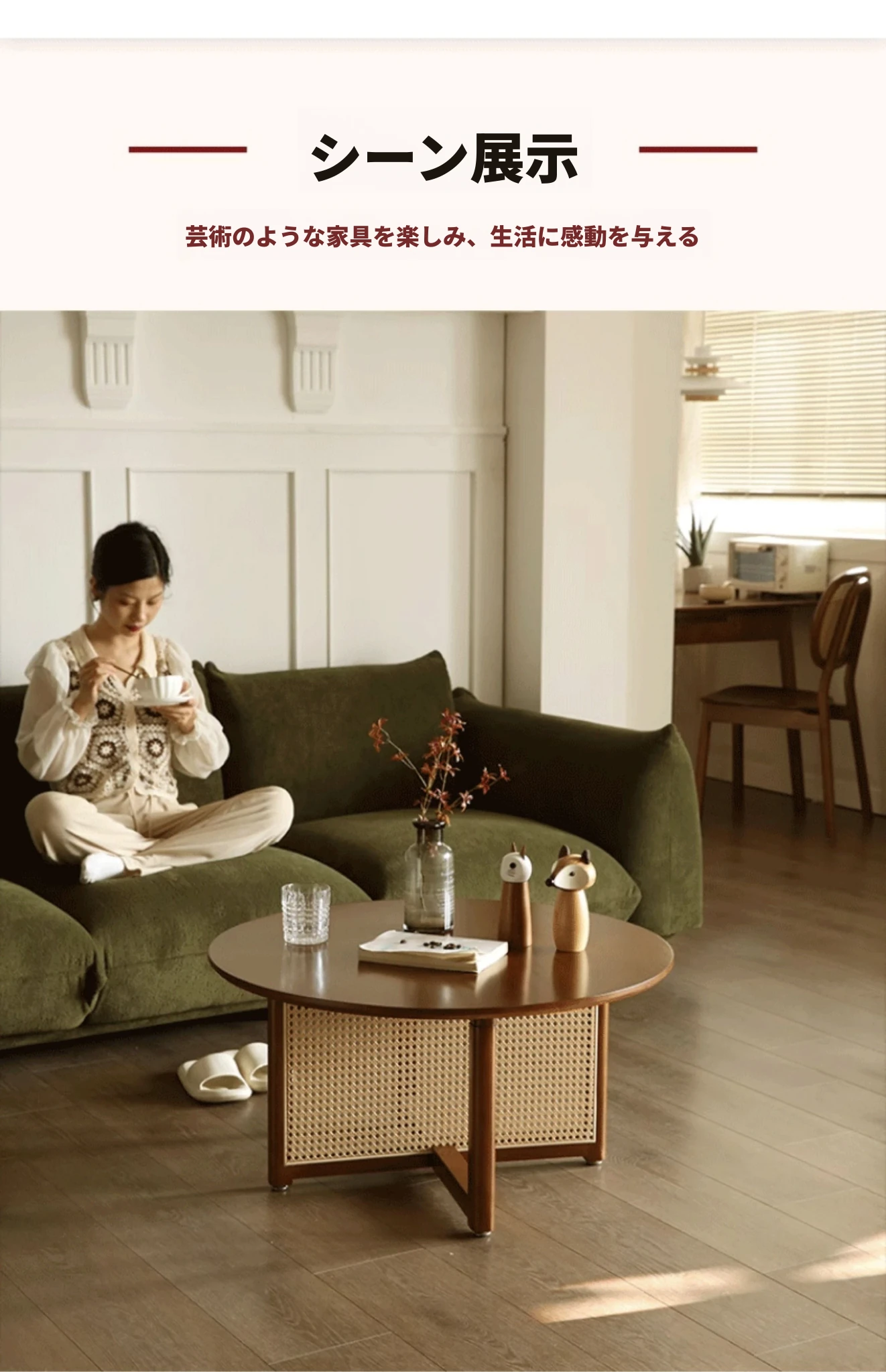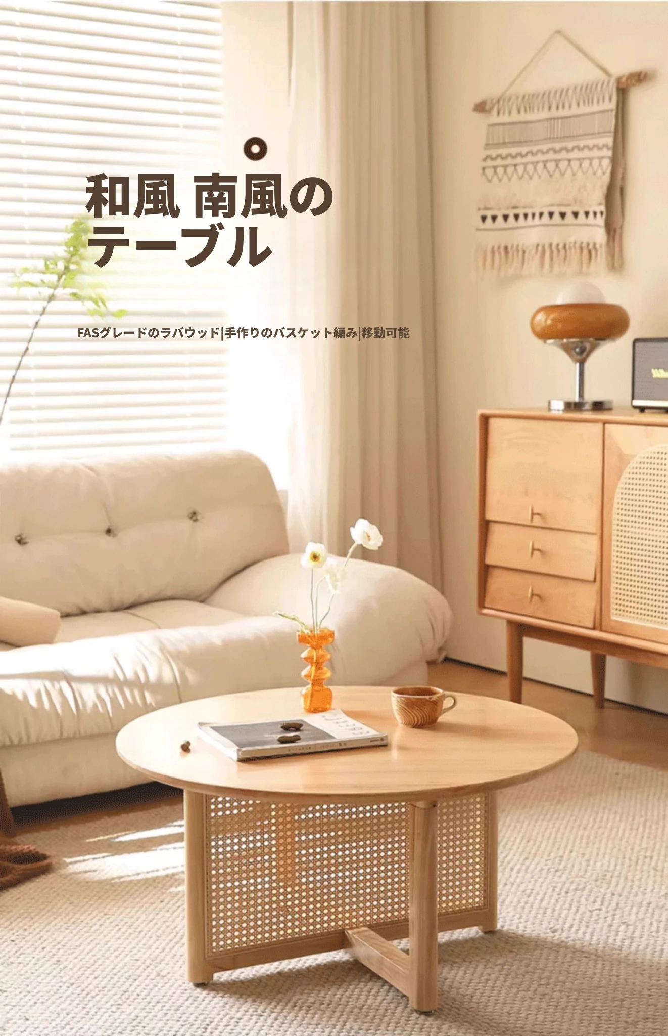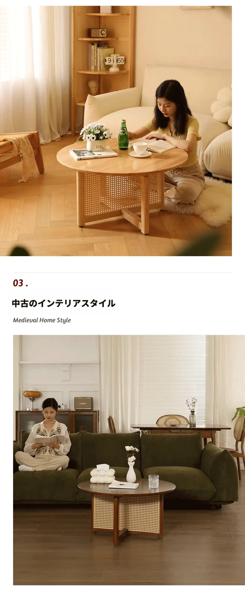 胡桃色-直径80cm FAS級輸入無垢材⭐メーカー直販*****和風復古スタイルバルコニー籐編原木茶卓*****【バイヤーショー募集】