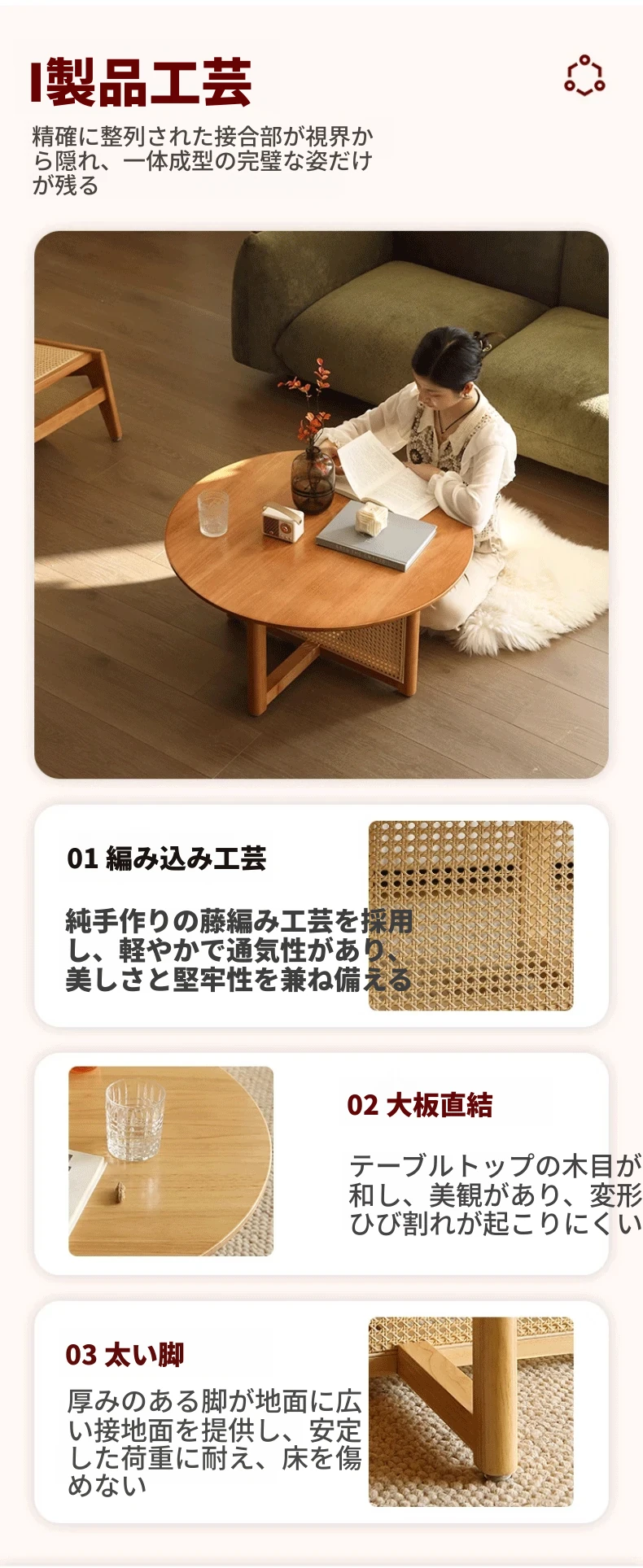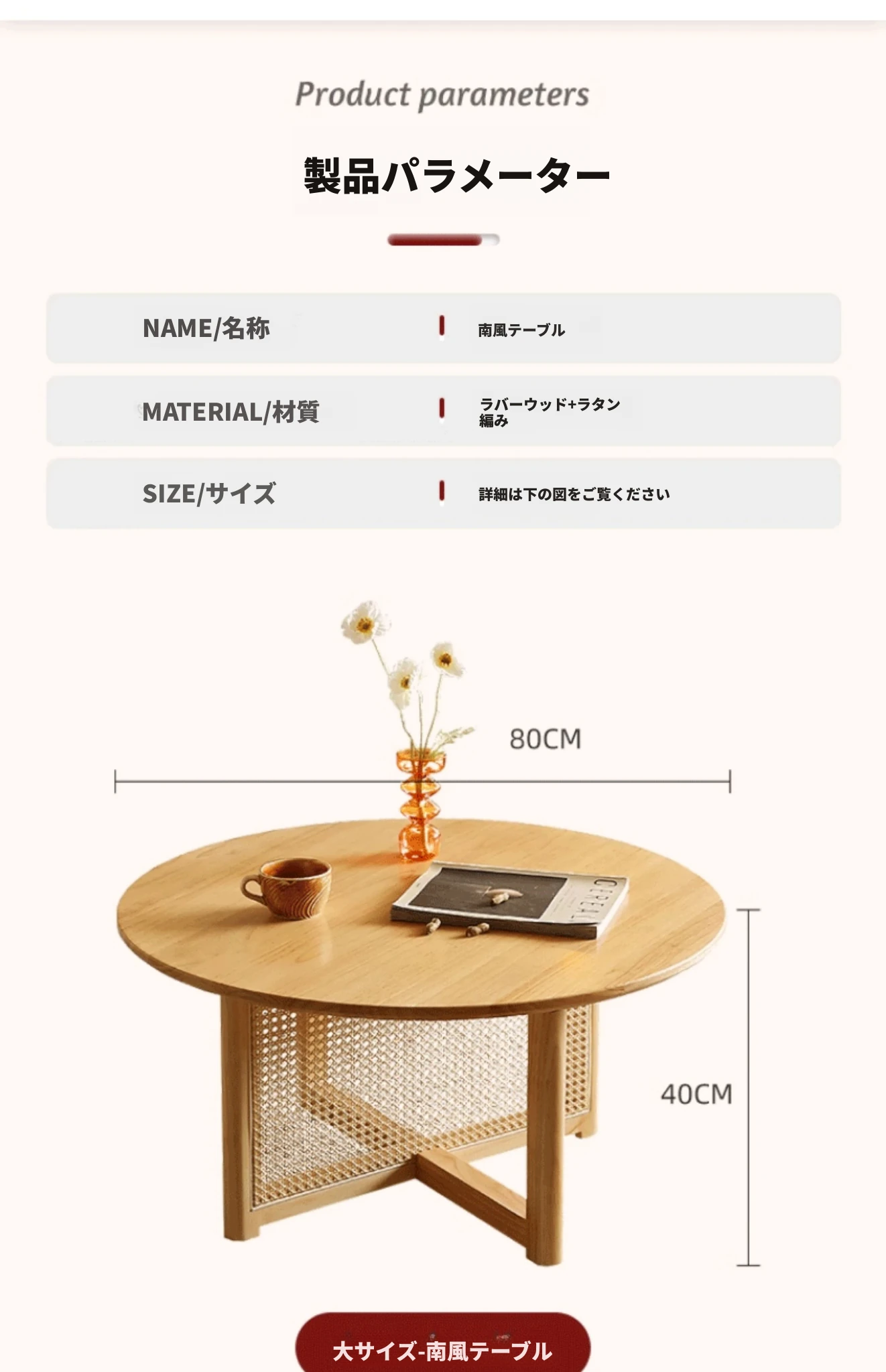 樱桃色-直径80cm FAS級輸入無垢材⭐メーカー直販