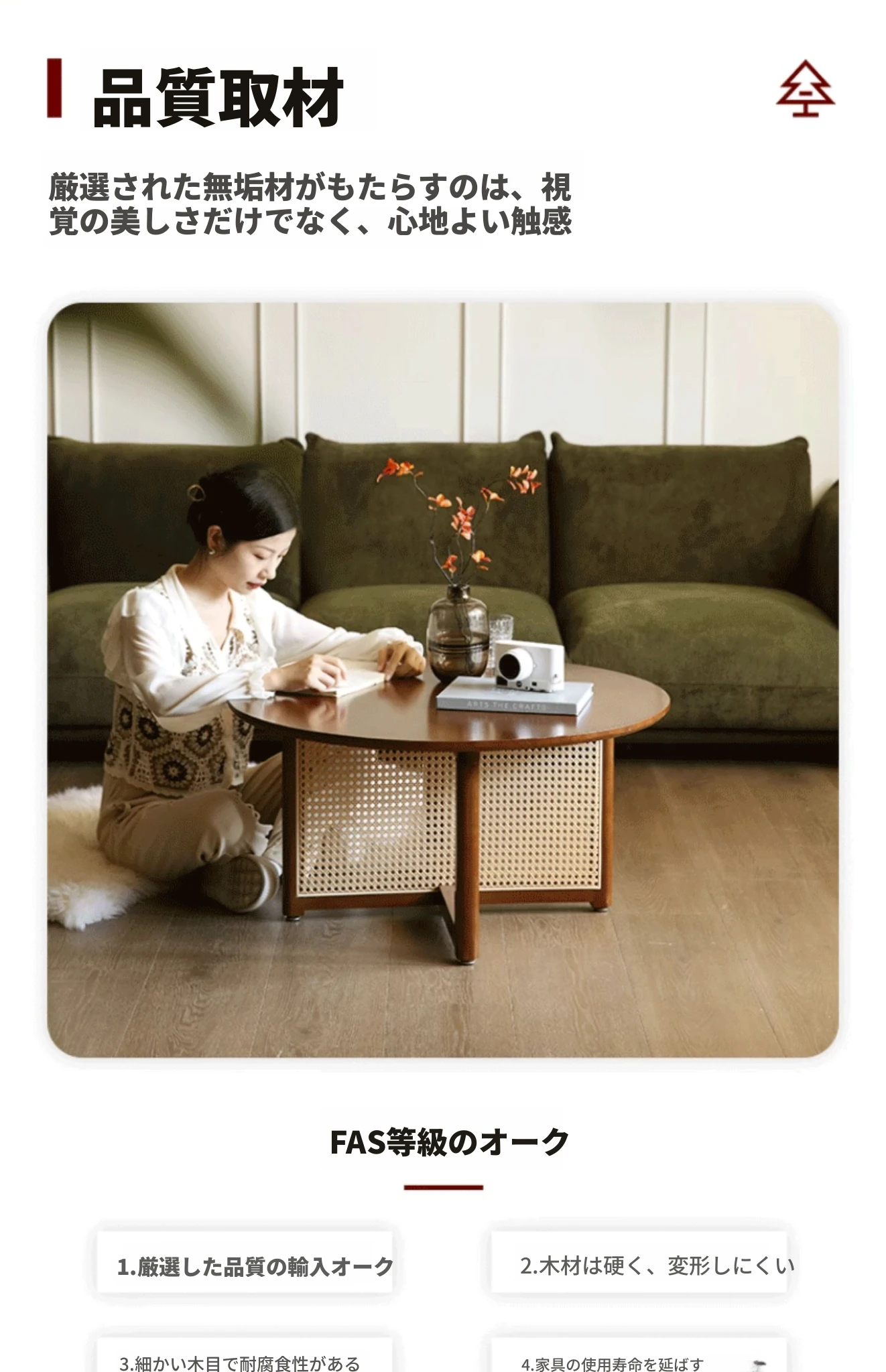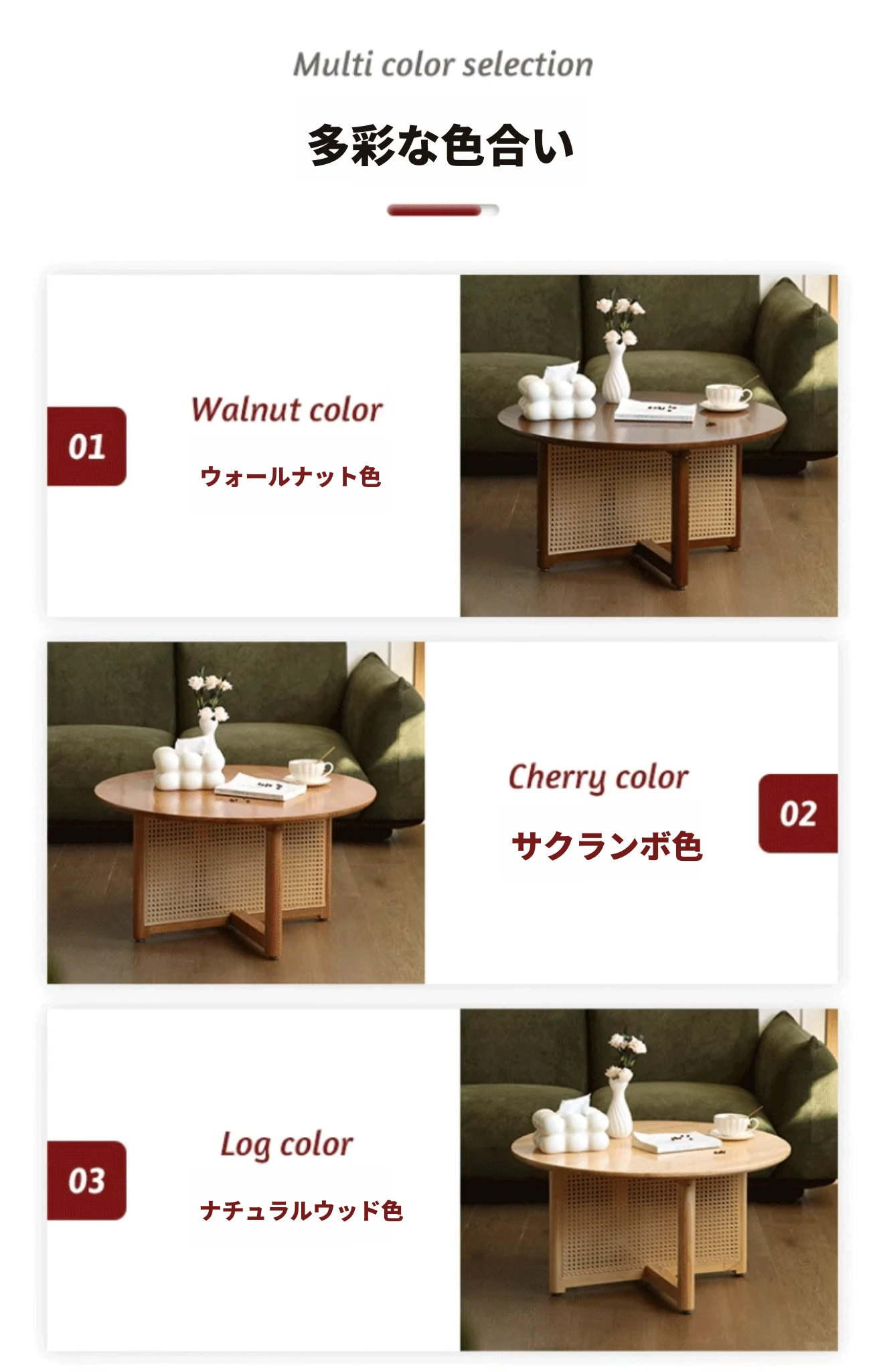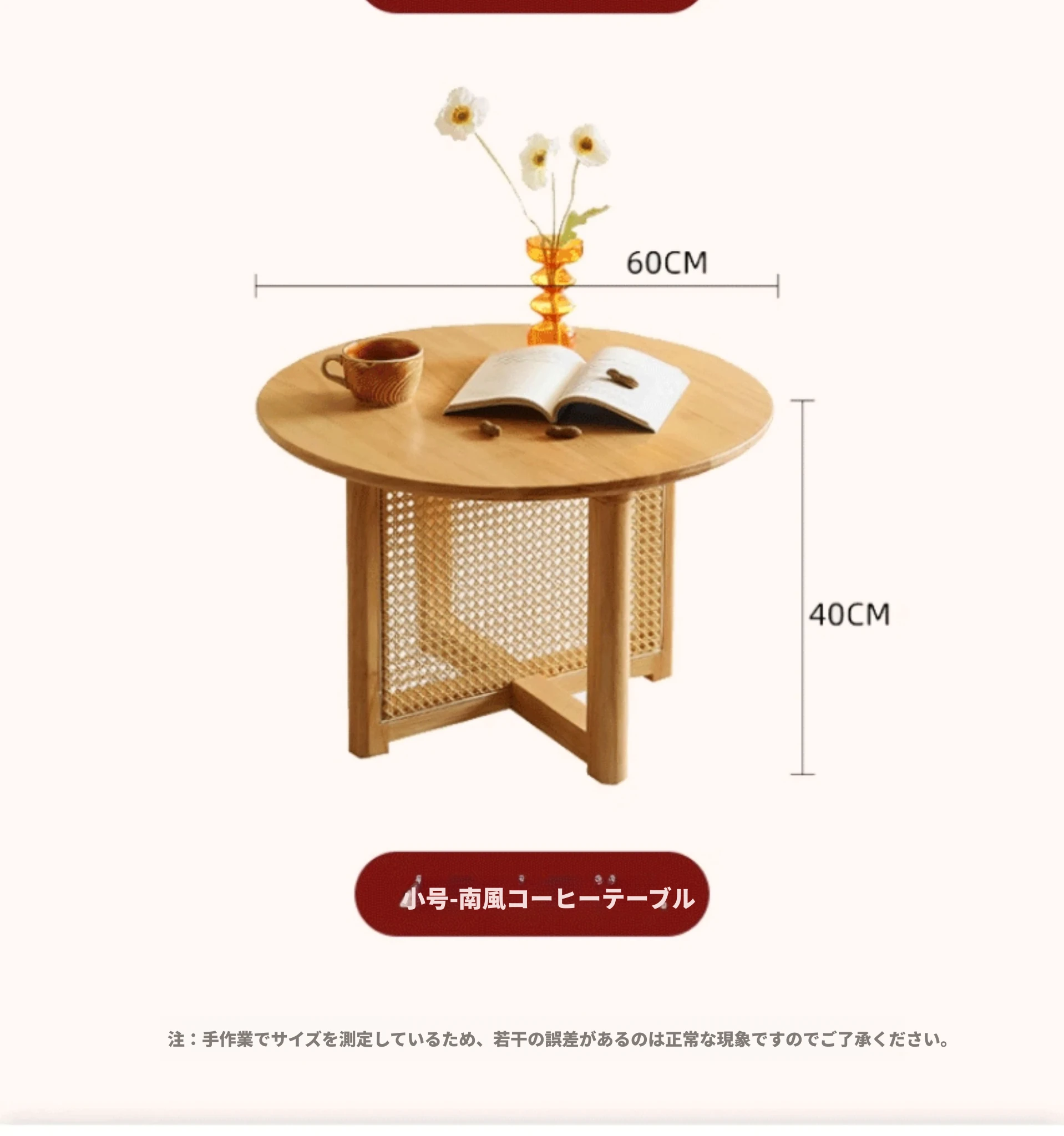 樱桃色-直径60cm FAS級輸入無垢材⭐メーカー直販