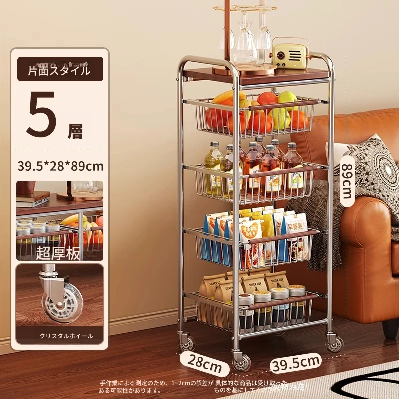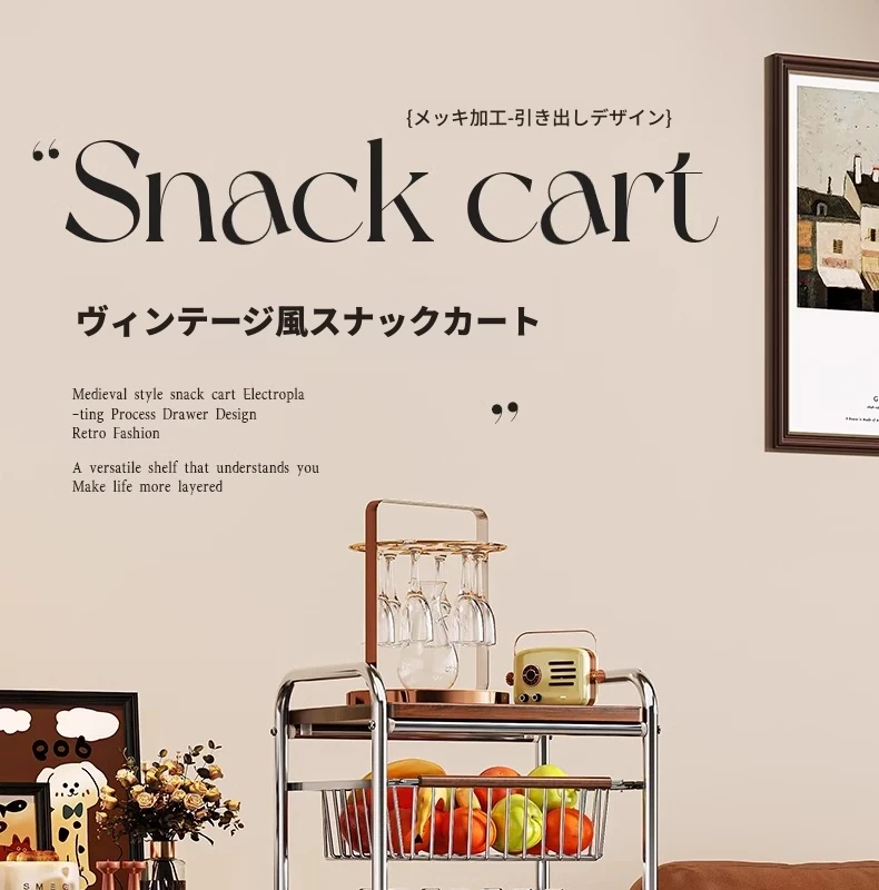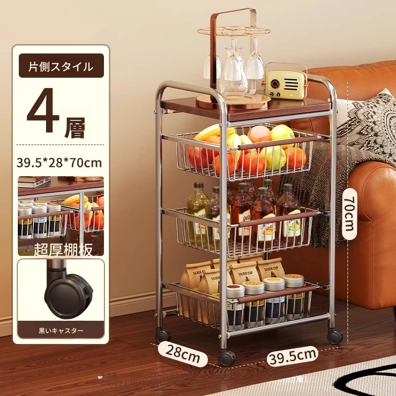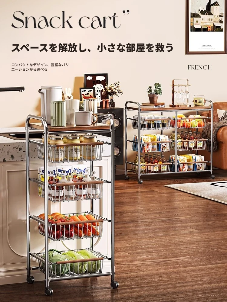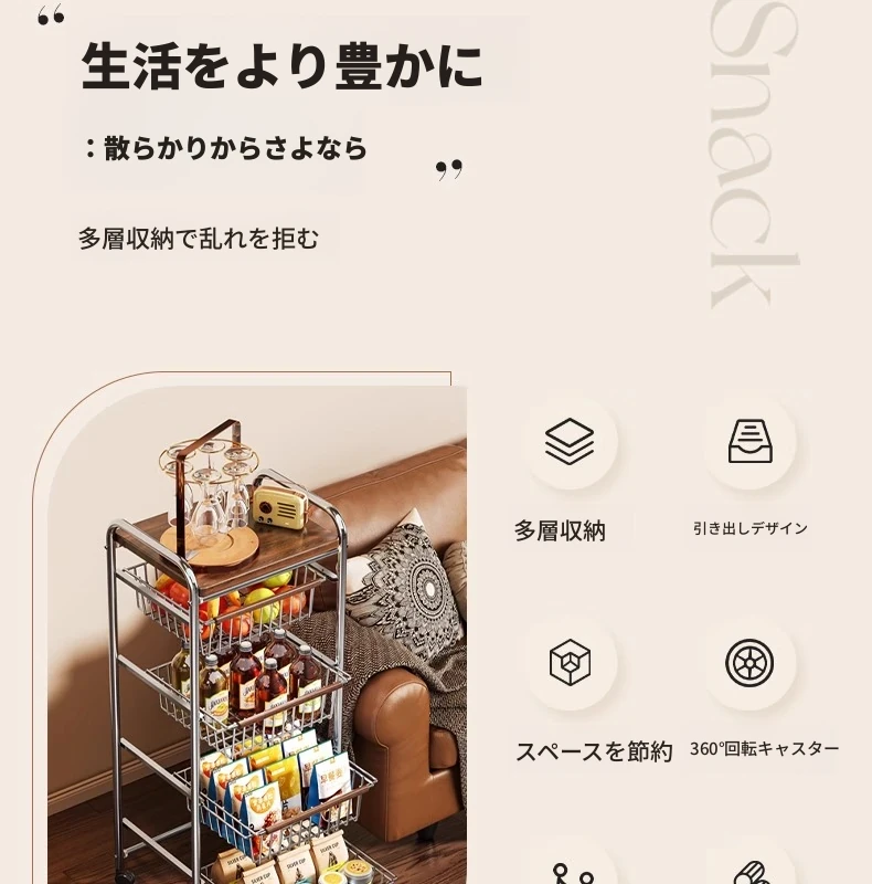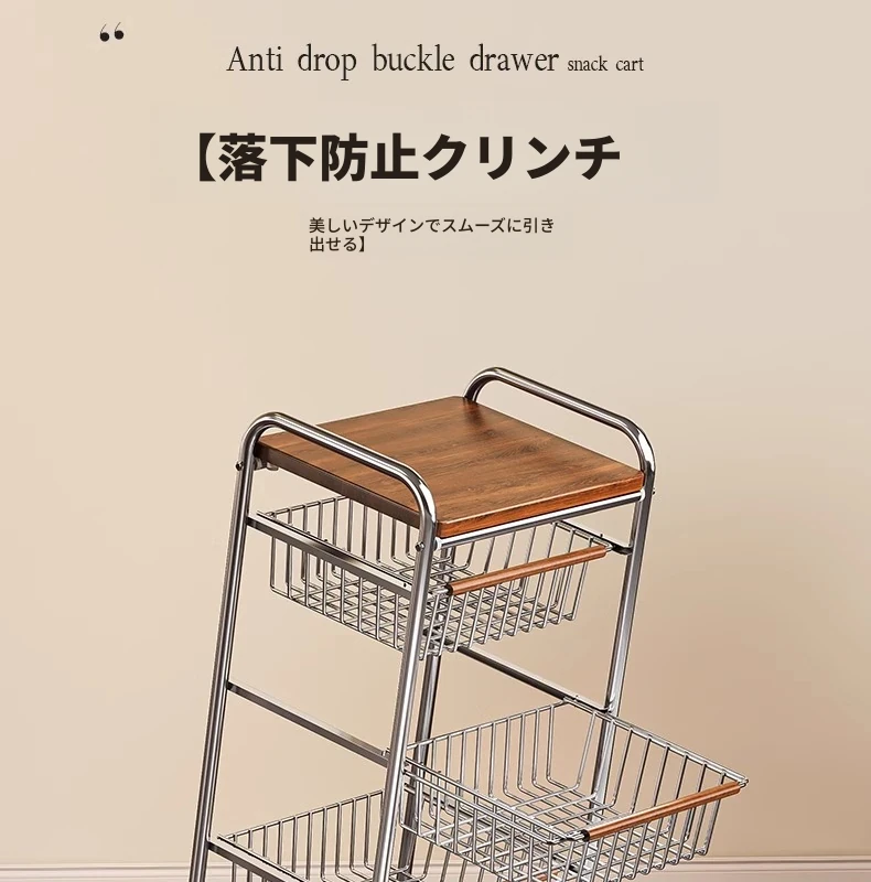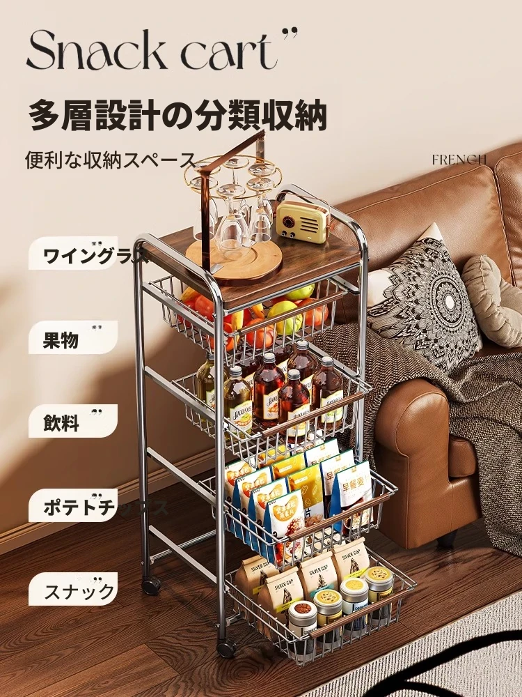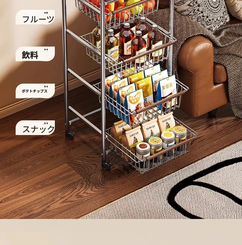 おしゃれな小型スナック収納キャッチャー - レトロ風の多層移動式キッチンワゴン!おもちゃや食材をスマートに収納できる便利なアイテム。キッチンやリビングにぴったりの収納ソリューション!