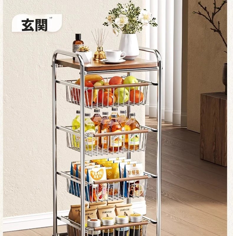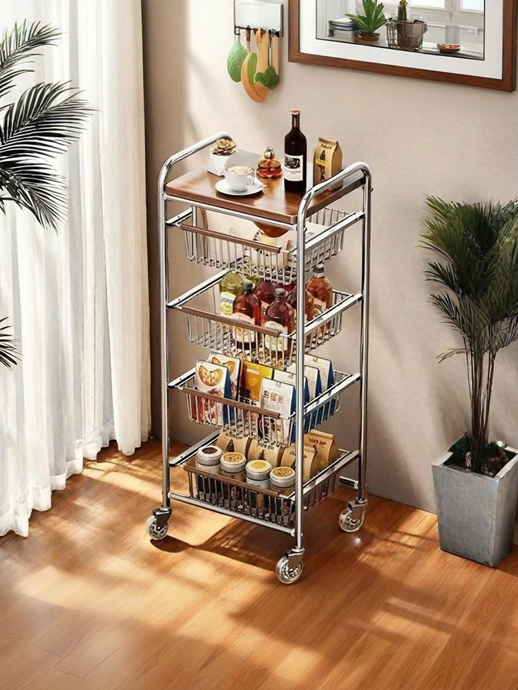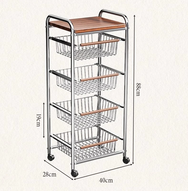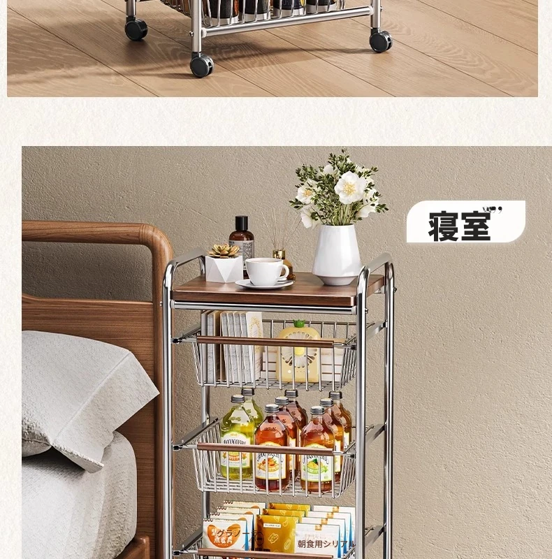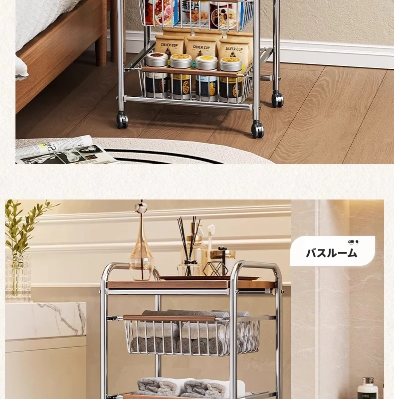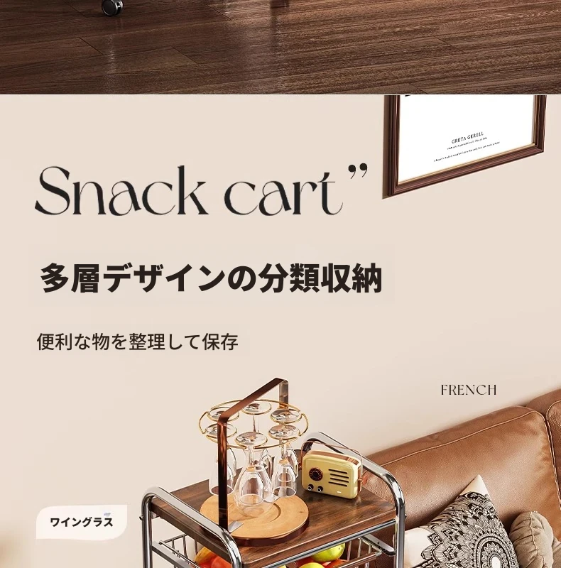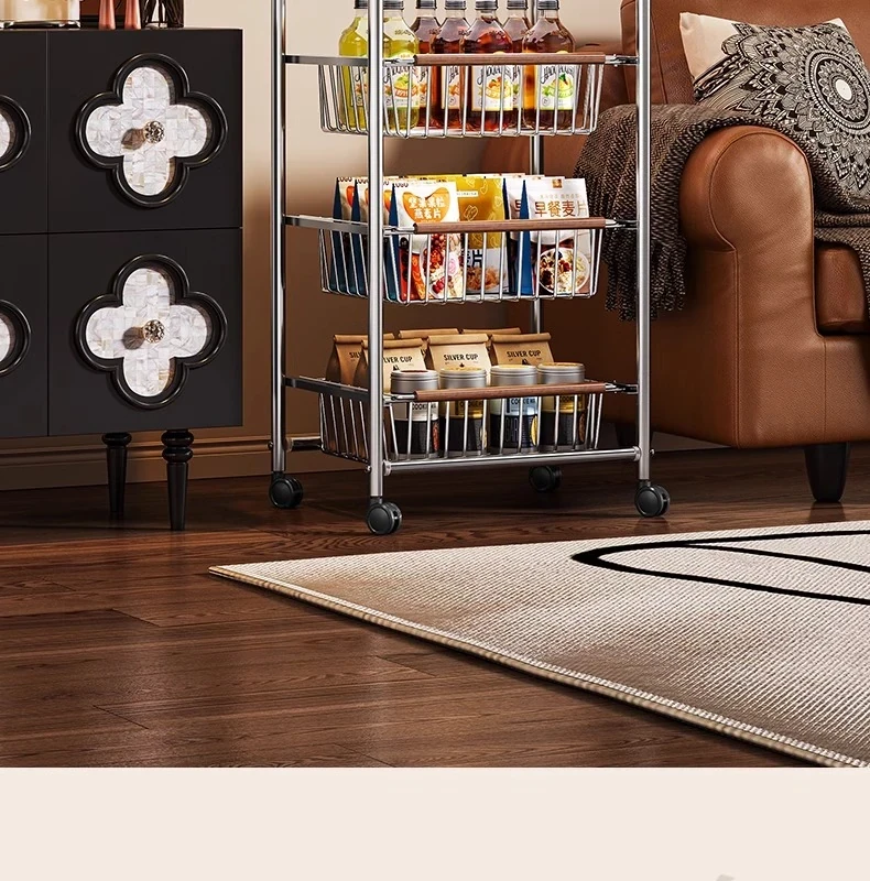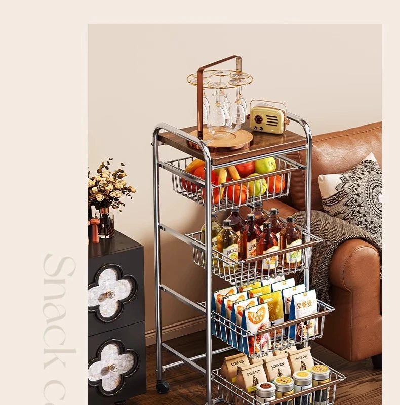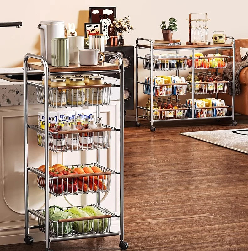 おしゃれな小型スナック収納キャッチャー - レトロ風の多層移動式キッチンワゴン!おもちゃや食材をスマートに収納できる便利なアイテム。キッチンやリビングにぴったりの収納ソリューション!