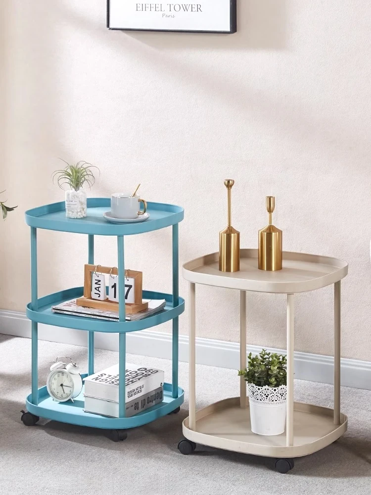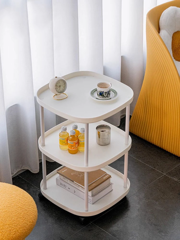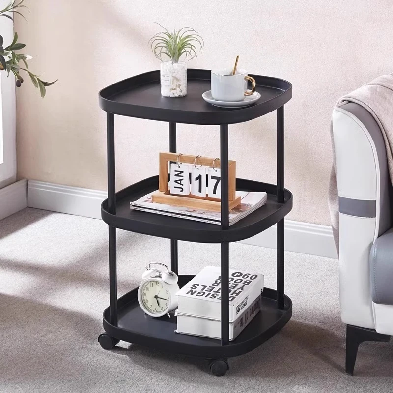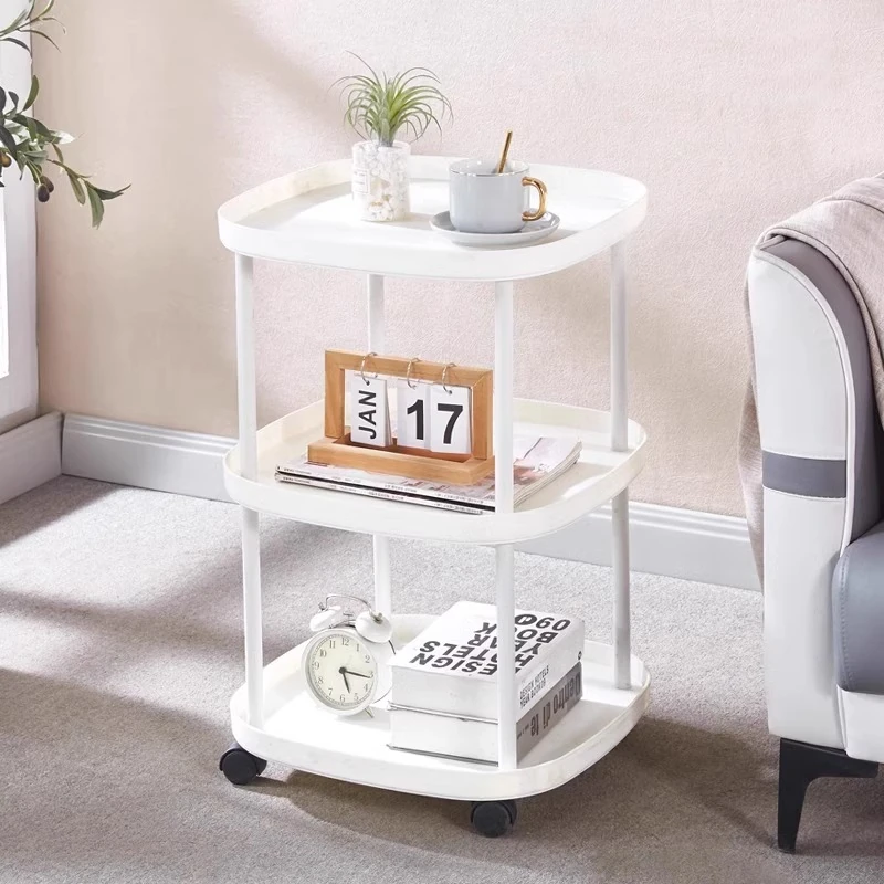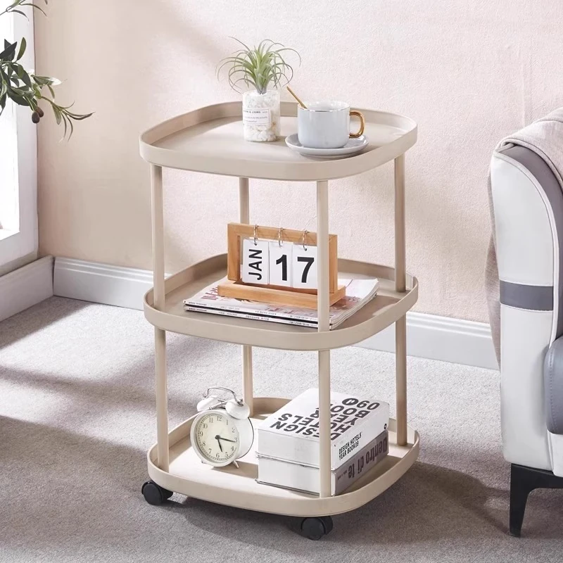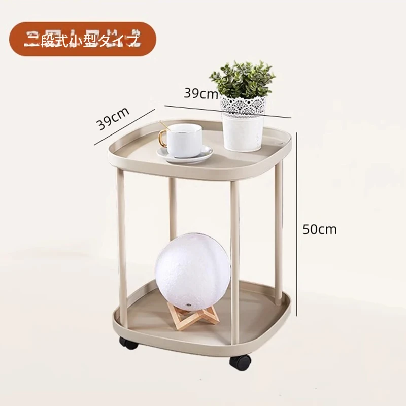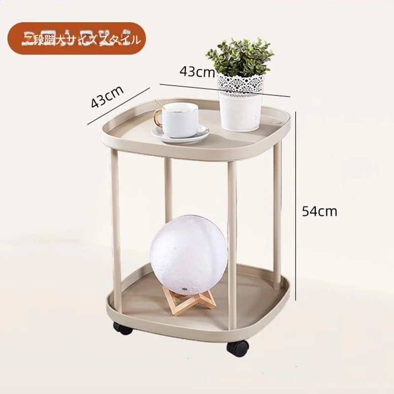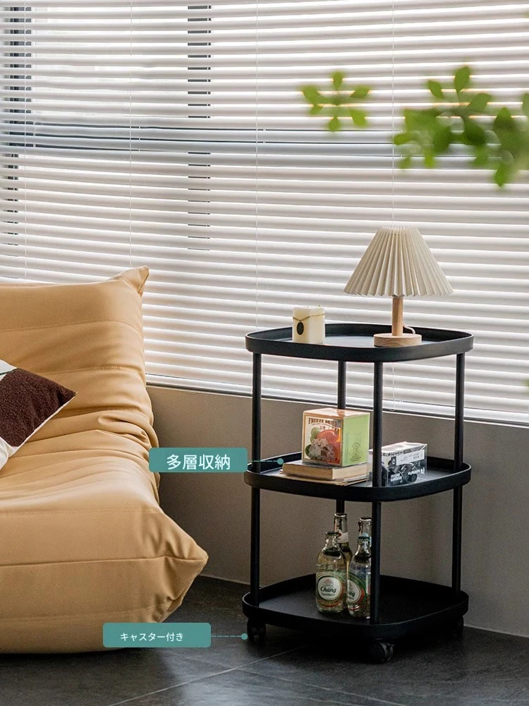 おしゃれなリビングにぴったり!移動式収納棚付きソファサイドテーブル - ミニマルデザインのナチュラルなサイドテーブル、寝室やバルコニーにも最適。快適なライフスタイルを実現する、使いやすいティーテーブルです。