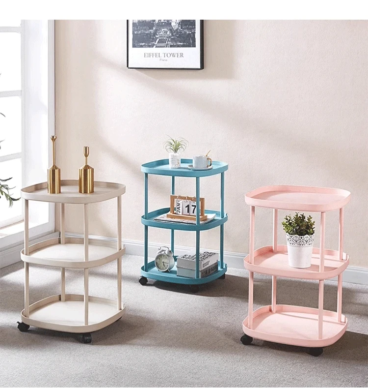 【大きな三層❤モバイルキャスター-カーボンスチールフレーム】-優しいピンク