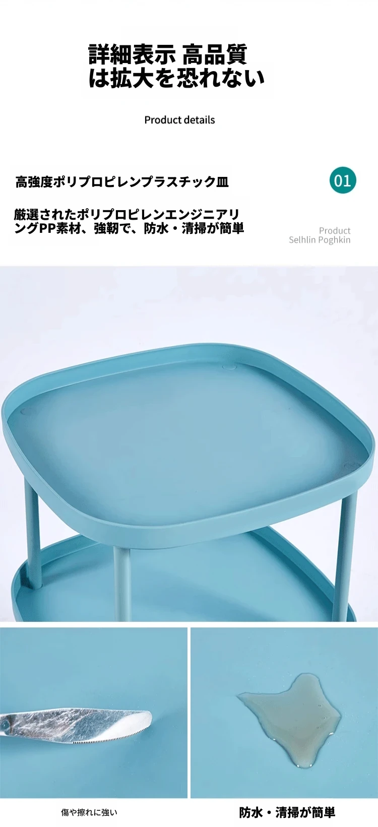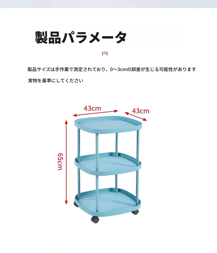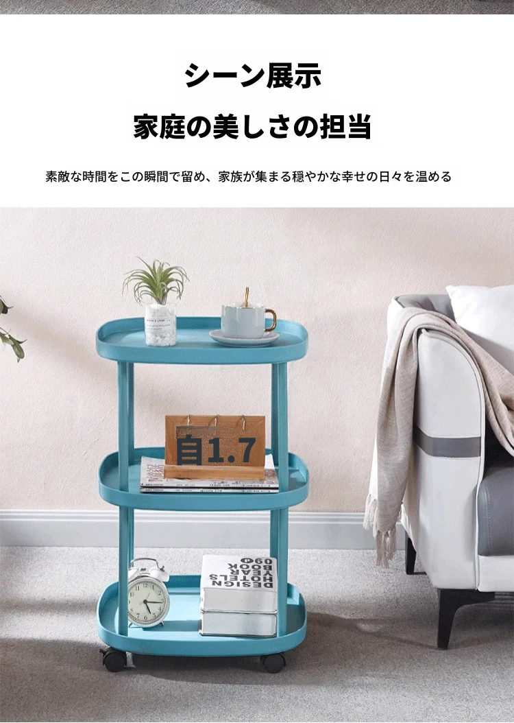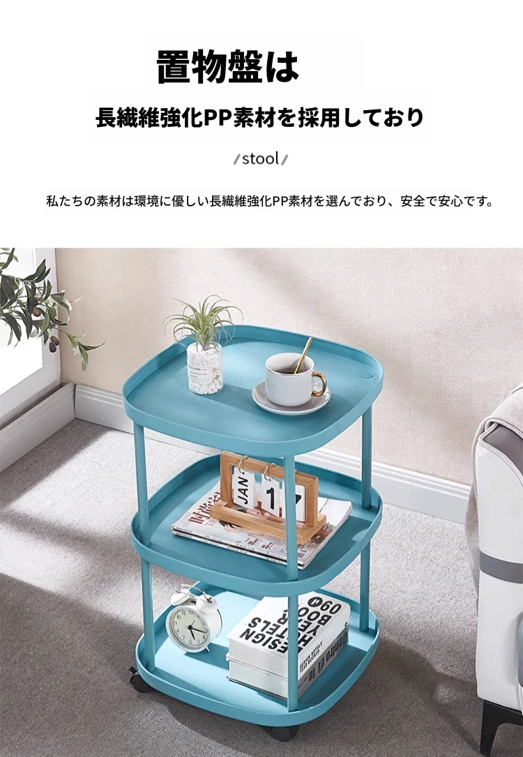 【大きな三層❤モバイルキャスター-カーボンスチールフレーム】-爽やかなブルー