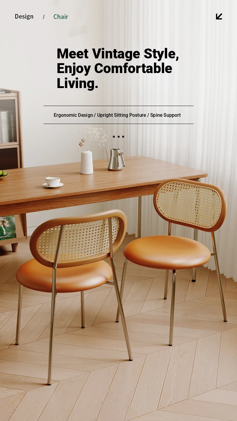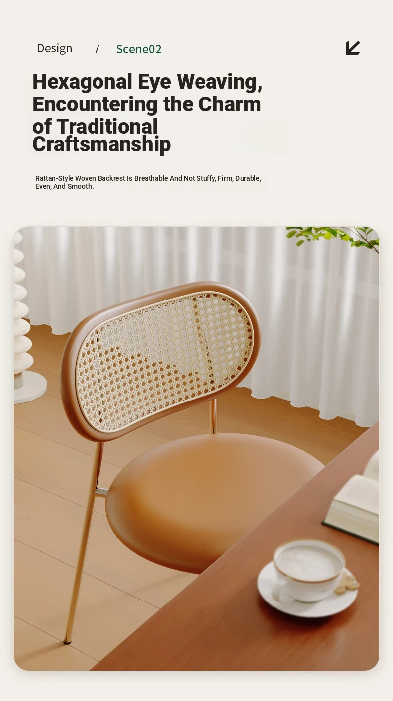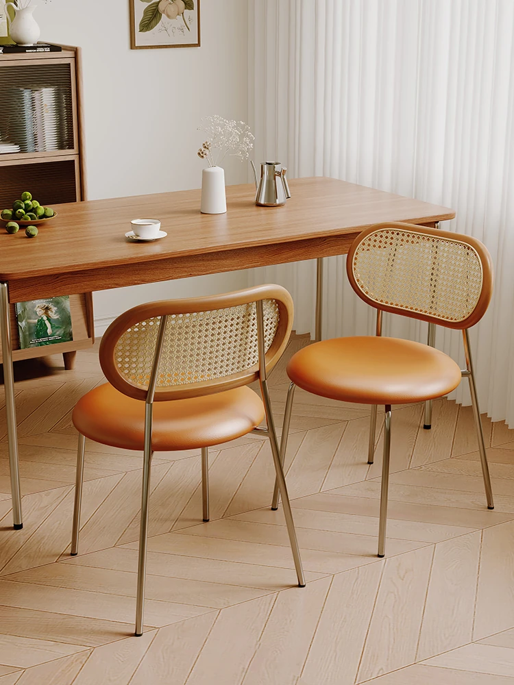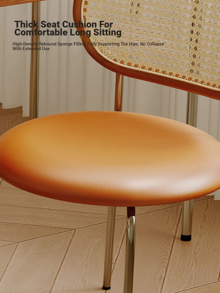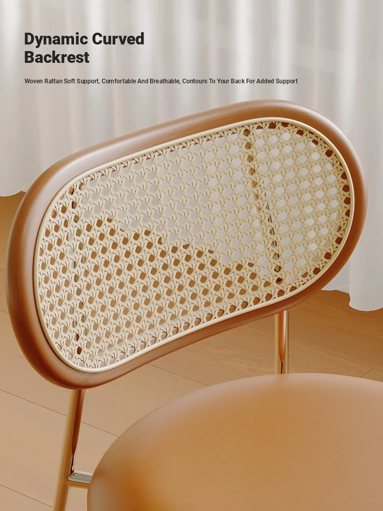Vintage Woven Rattan Dining Chair - Cozy Home Stool with Backrest for Tea, Perfect for Popular Airbnb, Restaurant & Rustic Style Dining Tables - Embrace Wabi-Sabi Aesthetic