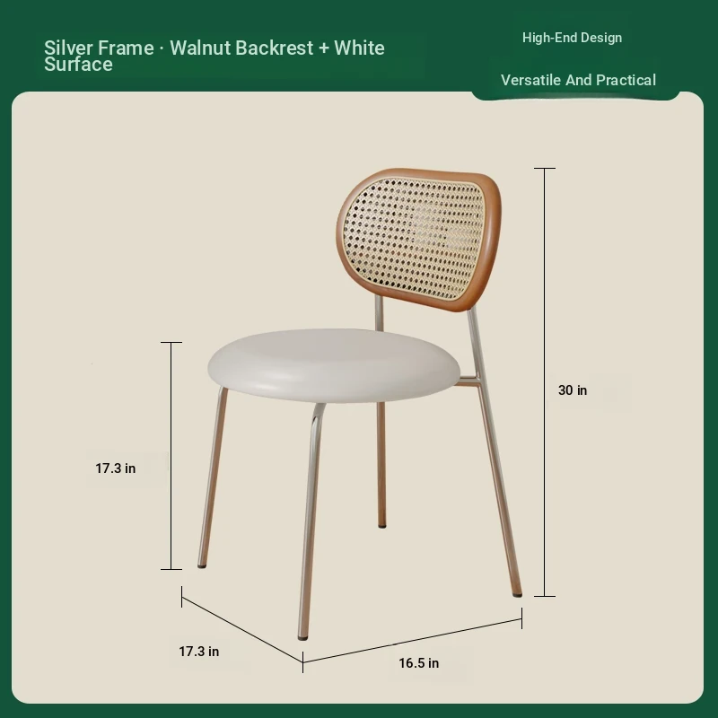 Walnut color solid wood backrest + white cushion + silver legs-thickened seat surface stable frame
