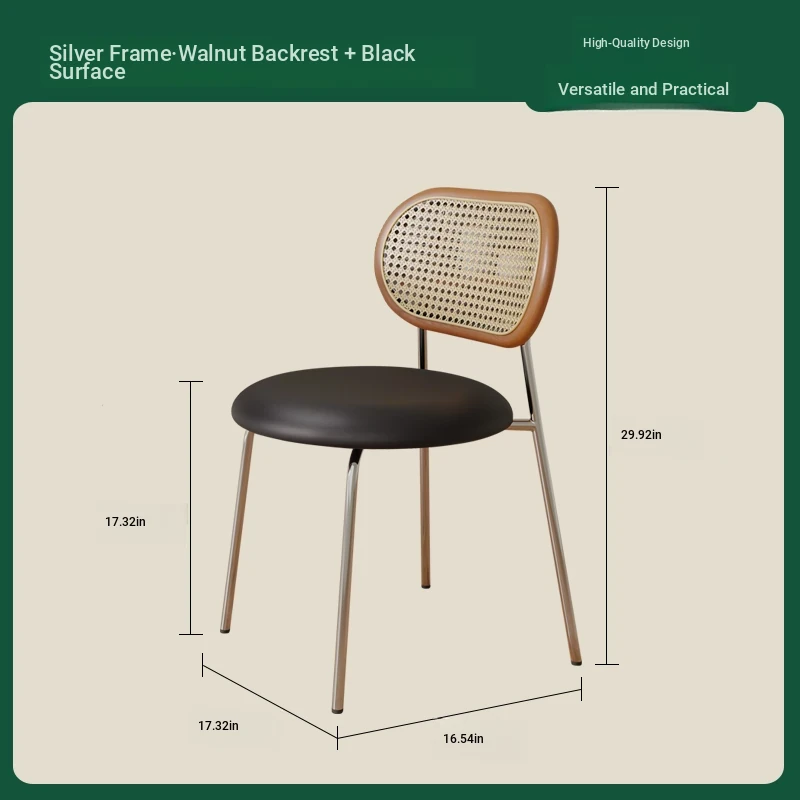 Walnut color solid wood backrest + black cushion + silver legs-thickened seat surface stable frame
