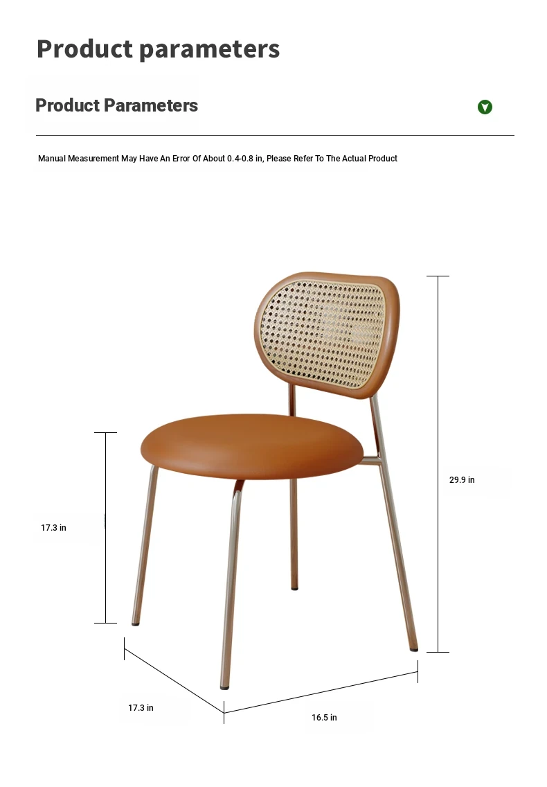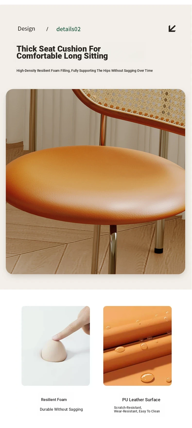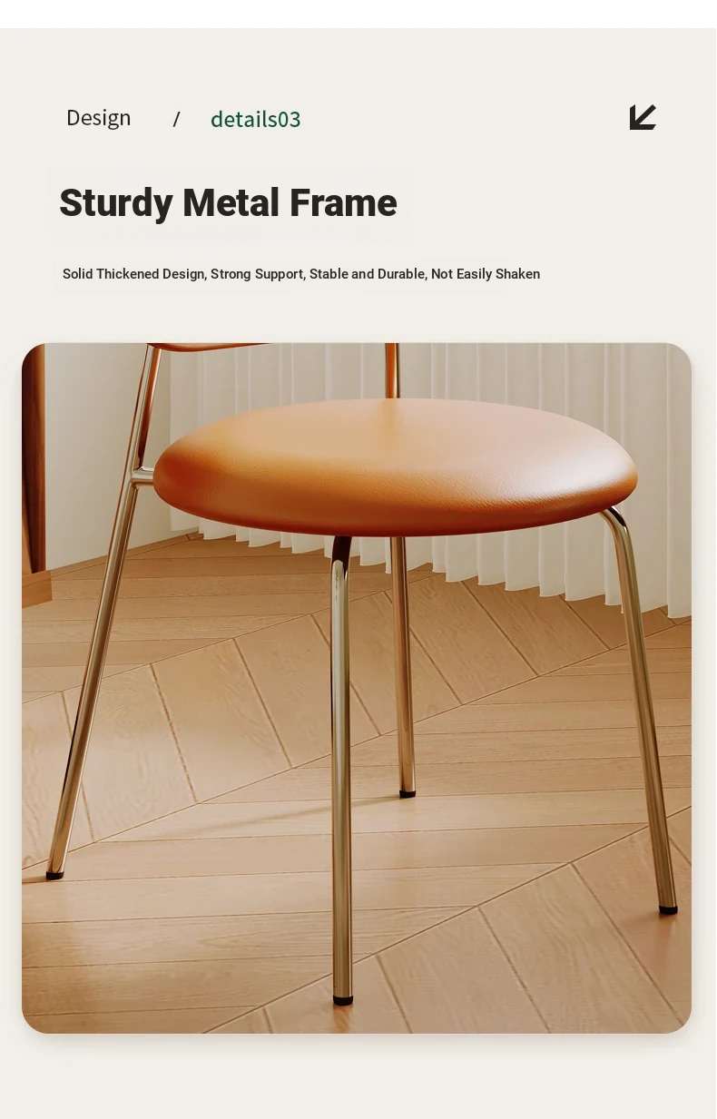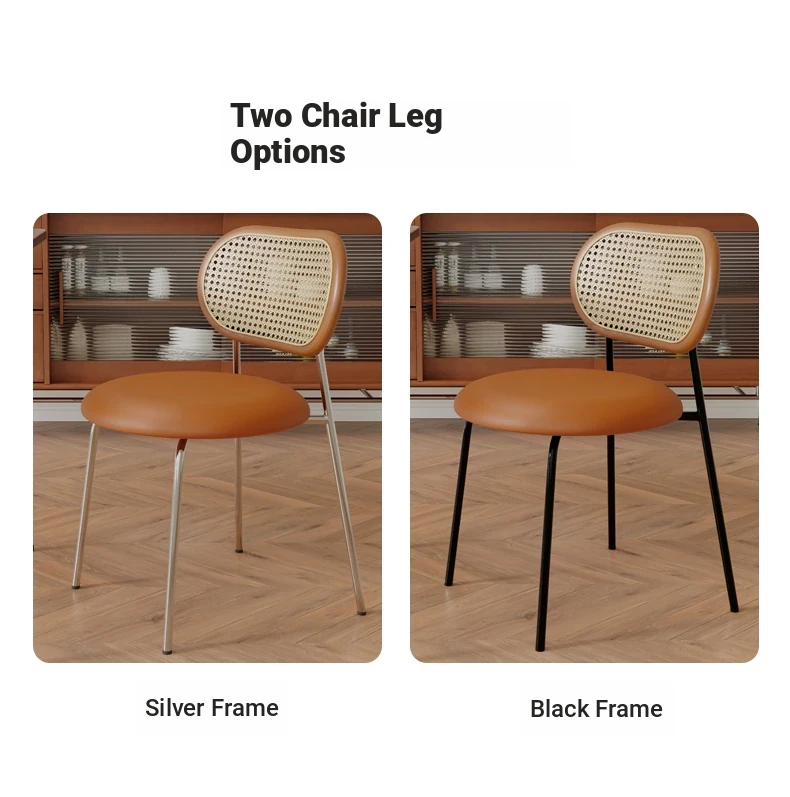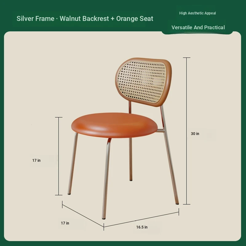 Walnut color solid wood backrest + orange cushion + silver legs-thickened seat surface stable frame