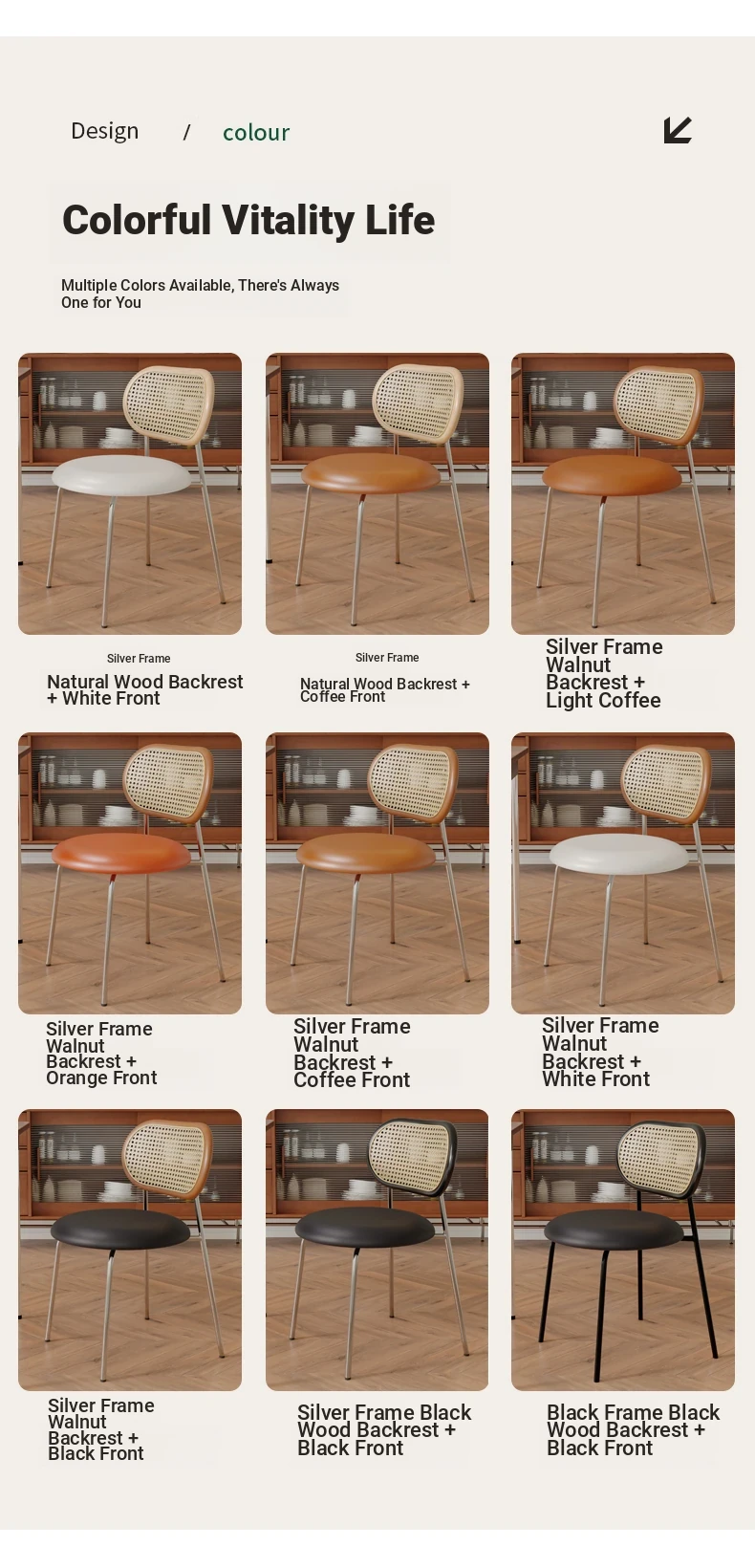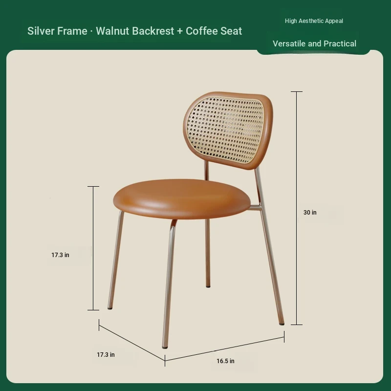 Walnut color solid wood backrest + coffee cushion + silver legs-thickened seat surface stable frame