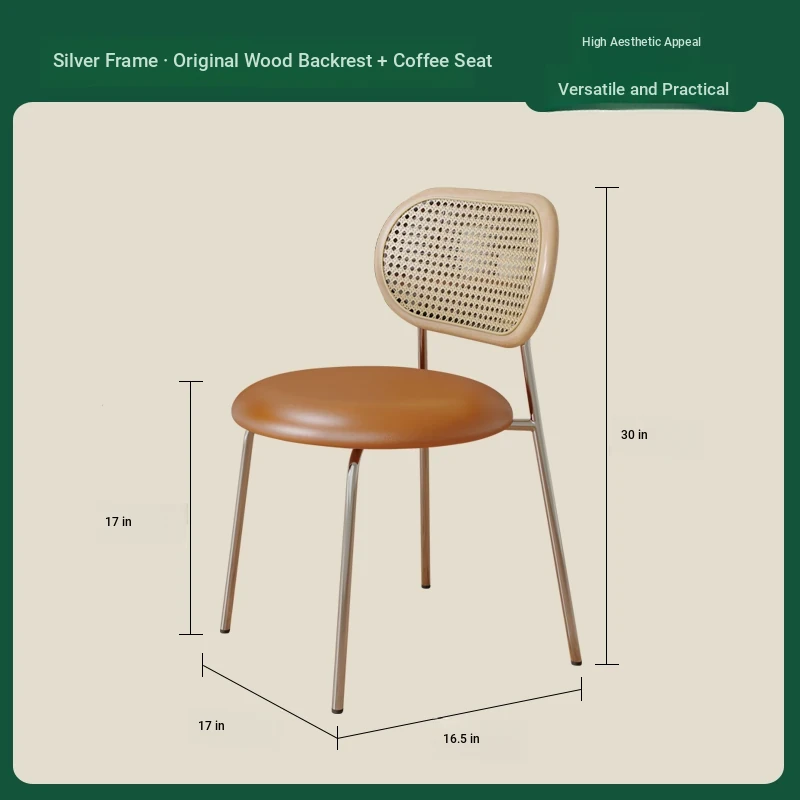 Log color solid wood backrest + coffee cushion + silver legs-thickened seat surface stable frame